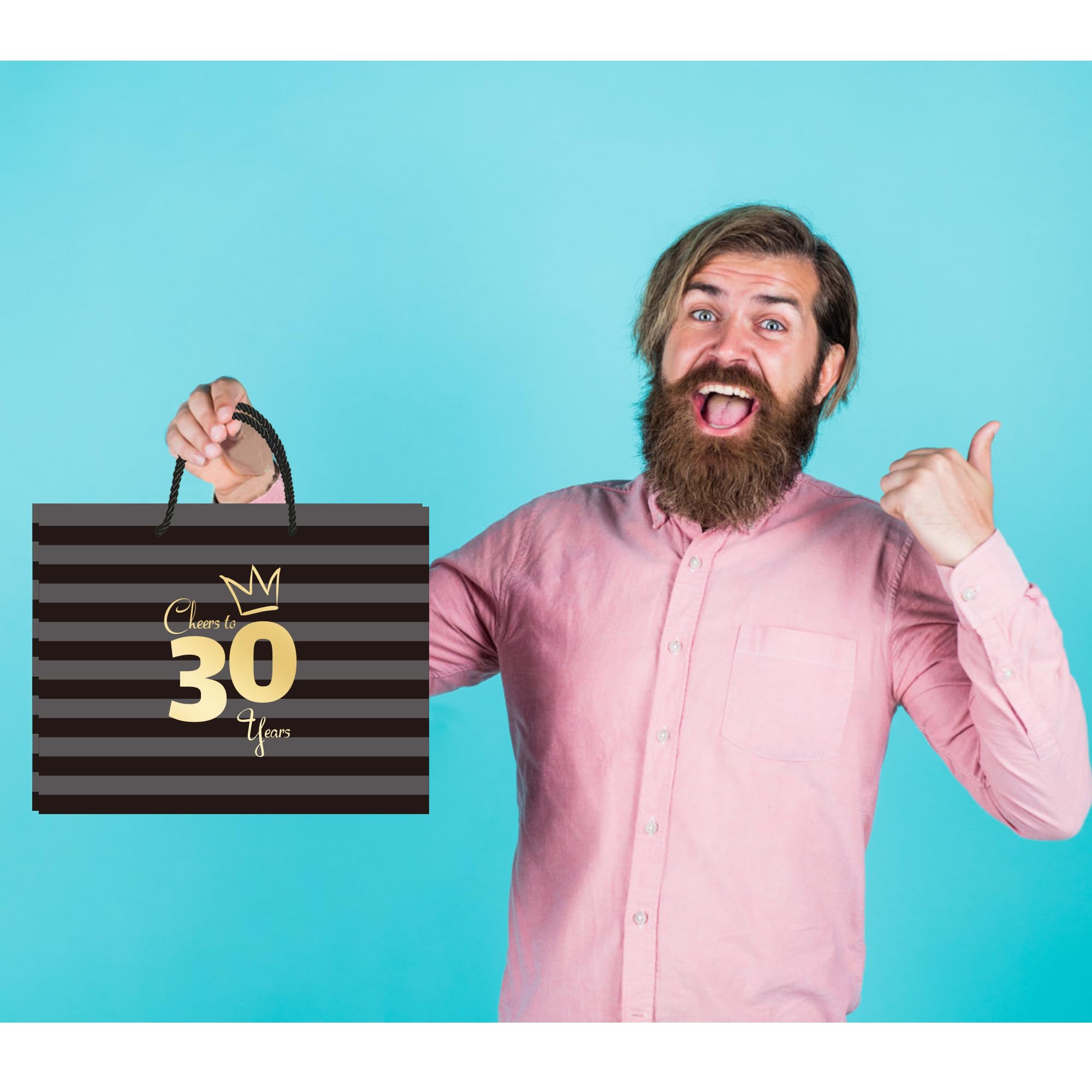 【30th Birthday Bag for Women】: The black and gray striped gift bag reads "Cheers to 30 years" and "Happy Birthday"!