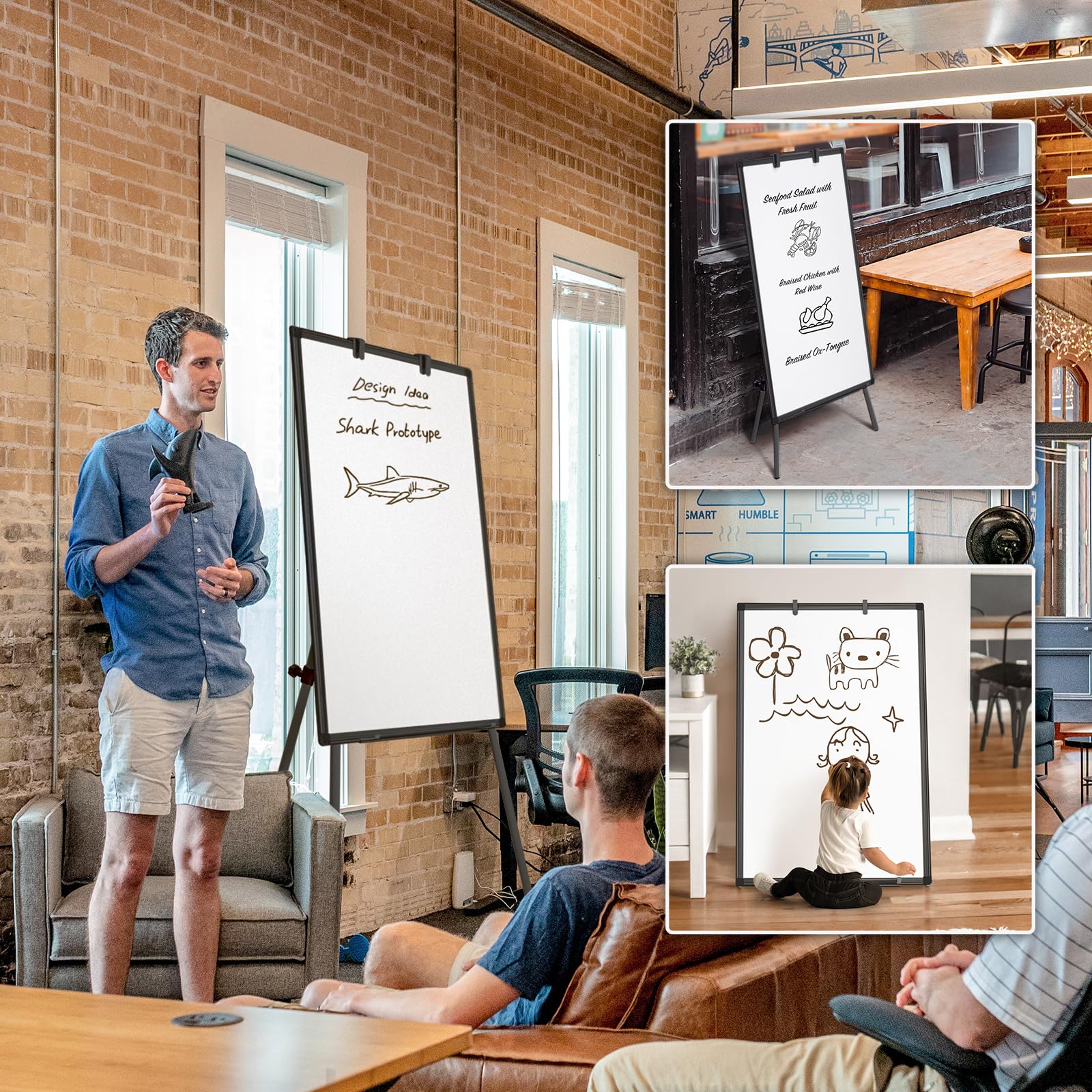 TRIPOD STANDS STABLE & NO WOBBLE: maxtek easel white board comes with a steel pipe tripod with rubber feet, making it stable enough to stand firmly whether you write or erase. The collapsible tripod also provides more flexibility to move the magnetic white board to other places as you like. Get a better experience when you use our portable dry erase board
