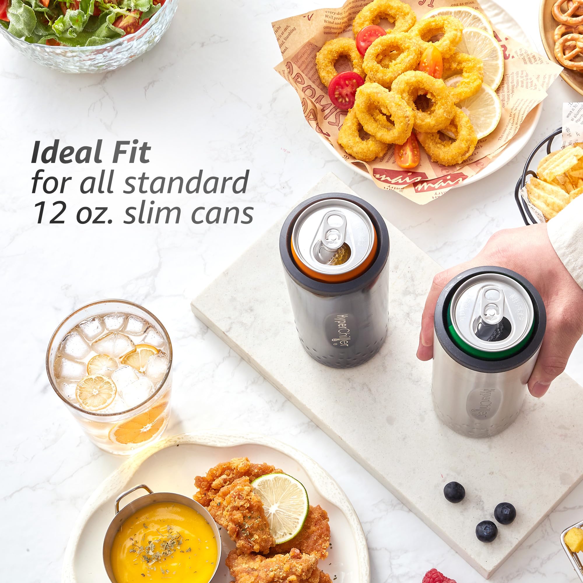 UNMATCHED QUALITY The New HyperChiller SLIM ensures your favorite 12oz slim cans stay refreshingly cold for hours, maintaining the chilling performance you’ve become accustomed to from HyperChiller. Ideal for all standard slim style 12-ounce cans to include soda, seltzer, beer & energy drinks!