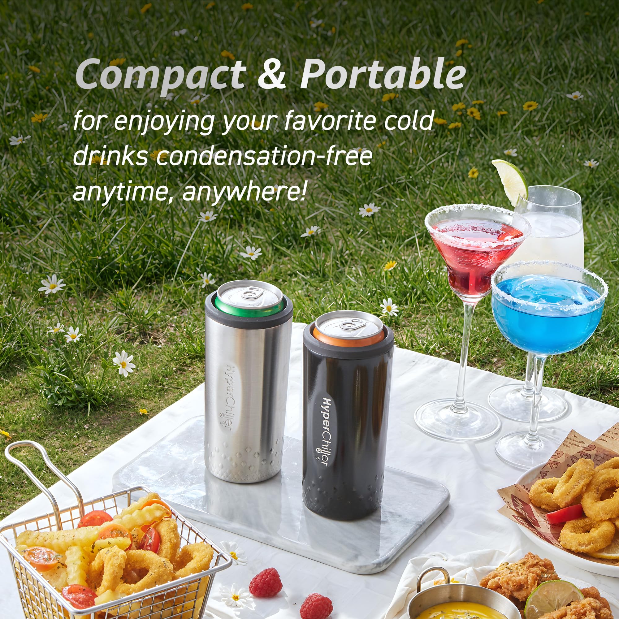 PORTABLE PERFECTION Compact, cup holder friendly and built to last, the HyperChiller SLIM is your ideal companion for any outdoor adventure. Whether it’s a day at the beach, a backyard barbeque, or a camping trip, take your cold drinks anywhere with ease.