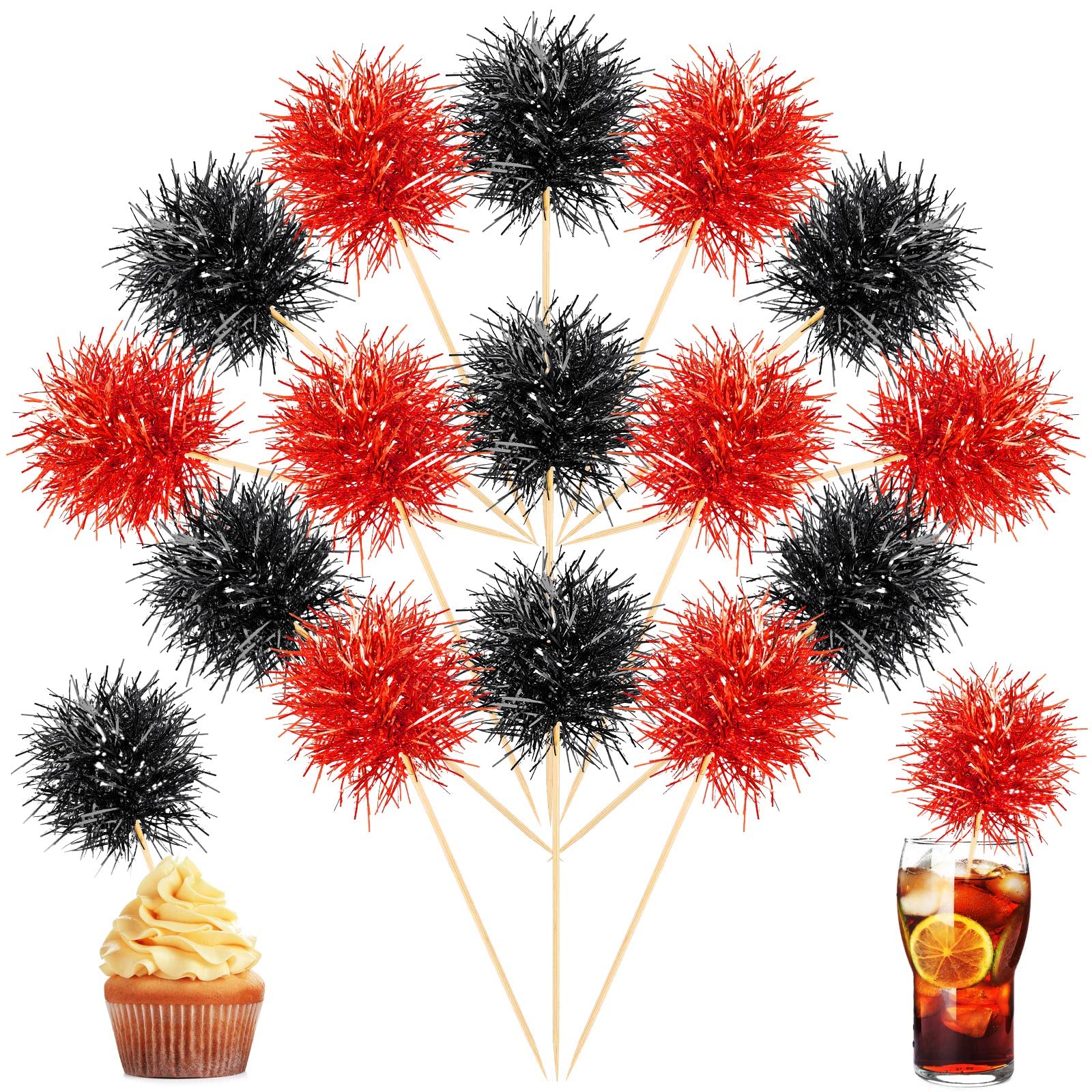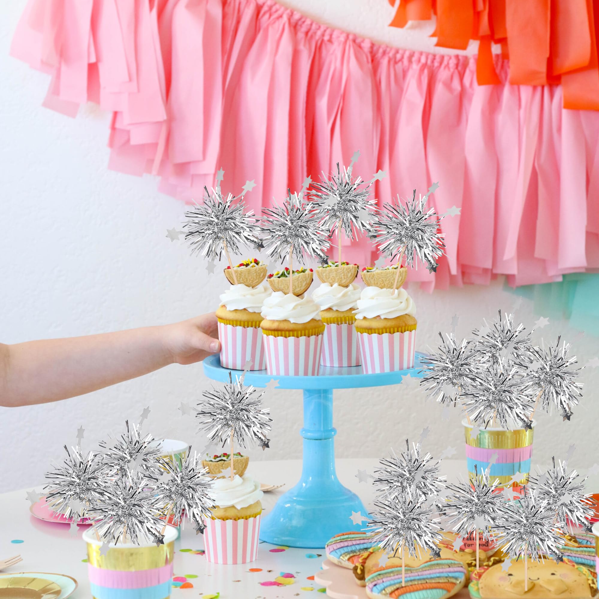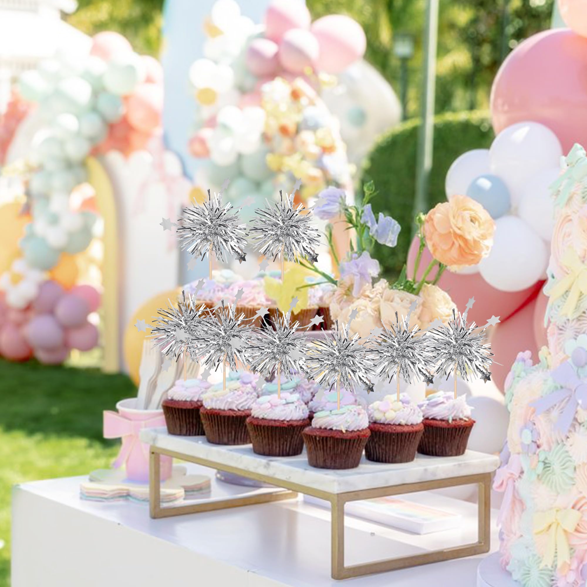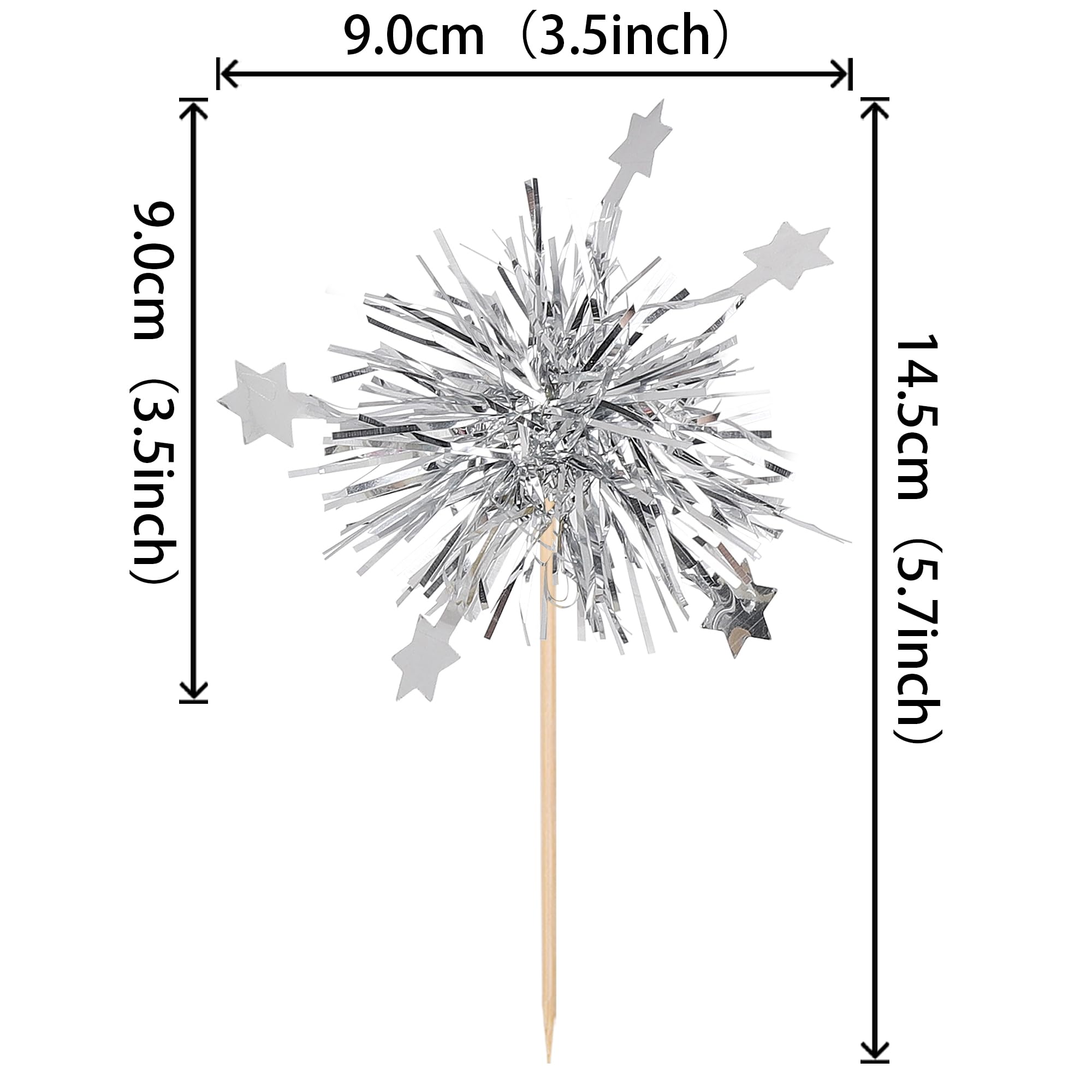 30 PCS Foil Firework Cupcake Toppers Star Cupcake Picks Sparkle Tinsel Flower Drink Stirrers Cocktail Food Fruit Toothpicks for Baby Shower Wedding Valentine's Day Birthday Party Cake Decorations Supplies Perfect for foil firework theme party, baby shower theme party, wedding bridal shower theme party, valentine's day theme party, kids boys girls birthday theme party cupcake decorations supplies. Pack of 30 pcs. The size is 2.8*5.1 inch ( with stick ) Made of high quality aluminium-foil paper and food grade sticks,thick and sturdy. These cupcake toppers are assembled in advance,so you don't need to DIY it by yourself,which can save you time and effort during the process of party preparation; You can insert them into your cake or cupcakes and adjust the suitable height to show better effects. These cupcake toppers are double sided printing, , and they are intended for decoration only, please do not put them in oven or microwave. If the item you received has any defects, please contact us for refund.we will deal with it within 24 hours.