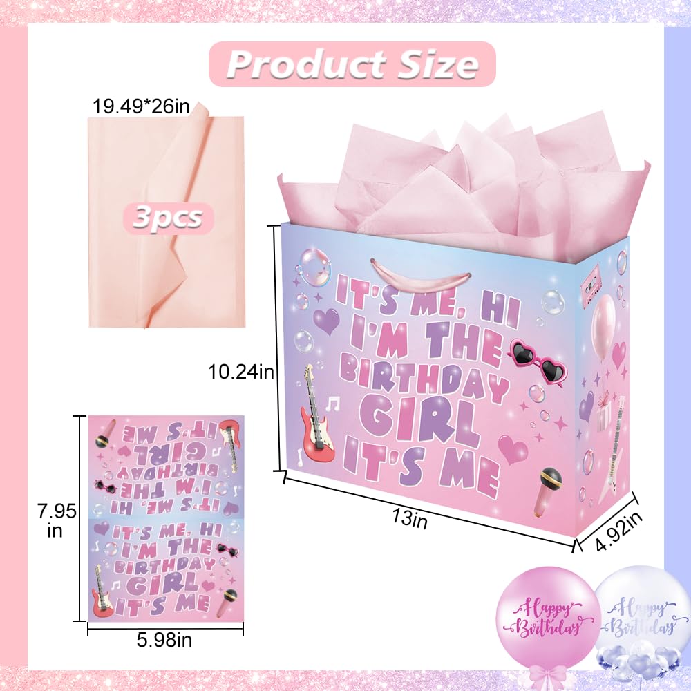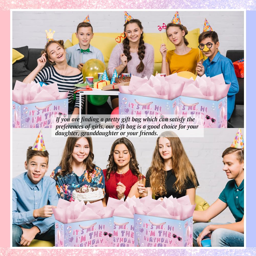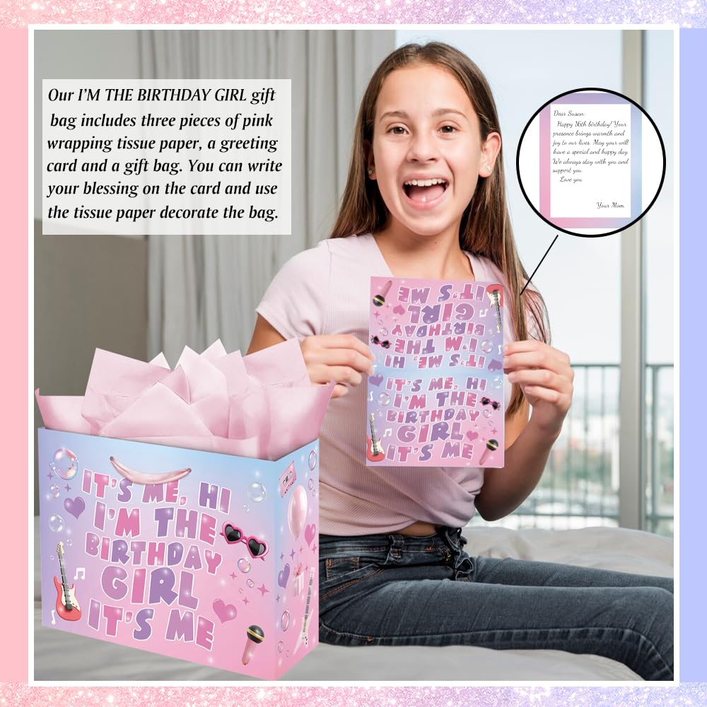 Product Include: Our I'm The Birthday Girl gift bag includes 3 pieces of pink wrapping tissue paper, a beautiful greeting card and a large gift bag. It can be a suitable and great decorations of girl's birthday gifts.