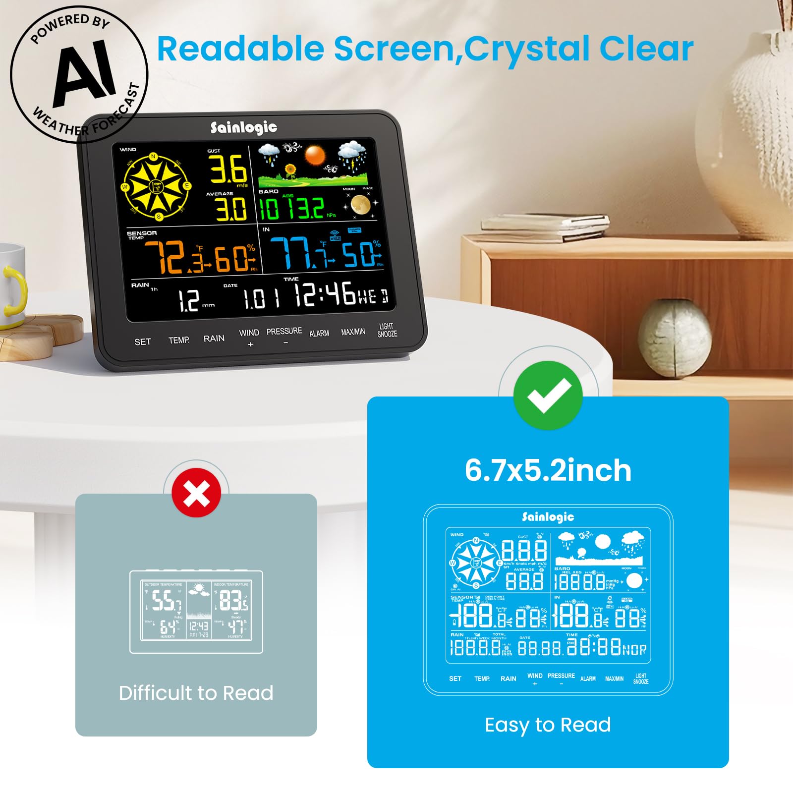 ๐๐น๐ฒ๐ฎ๐ฟ ๐๐ถ๐๐ฝ๐น๐ฎ๐ ๐๐ฎ๐๐ ๐ฅ๐ฒ๐ฎ๐ฑ๐ถ๐ป๐ด: This weather station is designed for effortless viewing, featuring a high-contrast display and user-friendly interface. Specially enlarged, bold fonts make key dataโsuch as temperature and humidityโeasy to read at a glance. Ideal for middle-aged and elderly users with declining vision, it allows them to track weather conditions without eyestrain. A thoughtful choice for gardeners and outdoor enthusiasts.