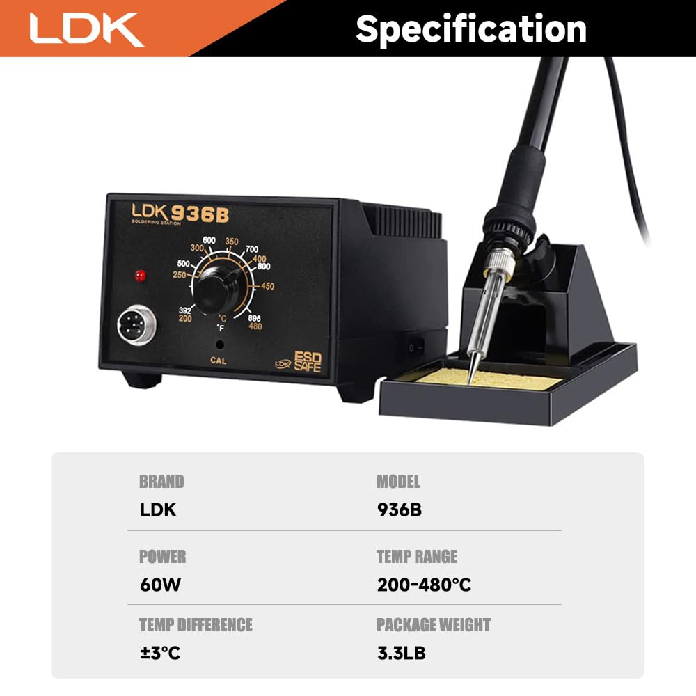 Complete Kit for All Your Needs: LDK Soldering Kit comes with everything you need for a seamless soldering experience. Includes 60W soldering station with handle, soldering iron stand, sponge cleaner, 5 soldering iron tips, solder wire, desoldering pump and wire cutter.