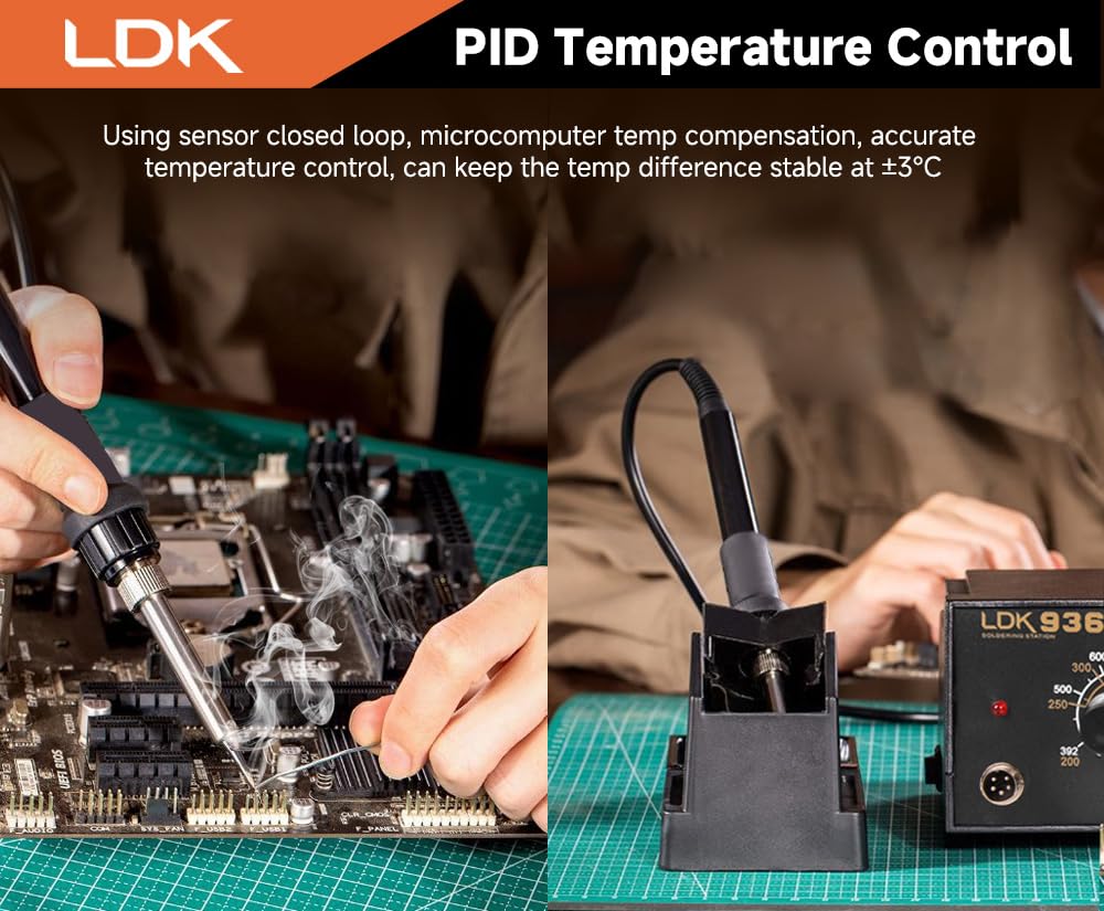 ESD Safe and User-Friendly Design: LDK Solder Station is designed with safety and convenience in mind. The separate ESD-safe body and soldering iron holder can be placed anywhere on the workbench, while the lightweight handle is ergonomically designed for long-term comfortable use.