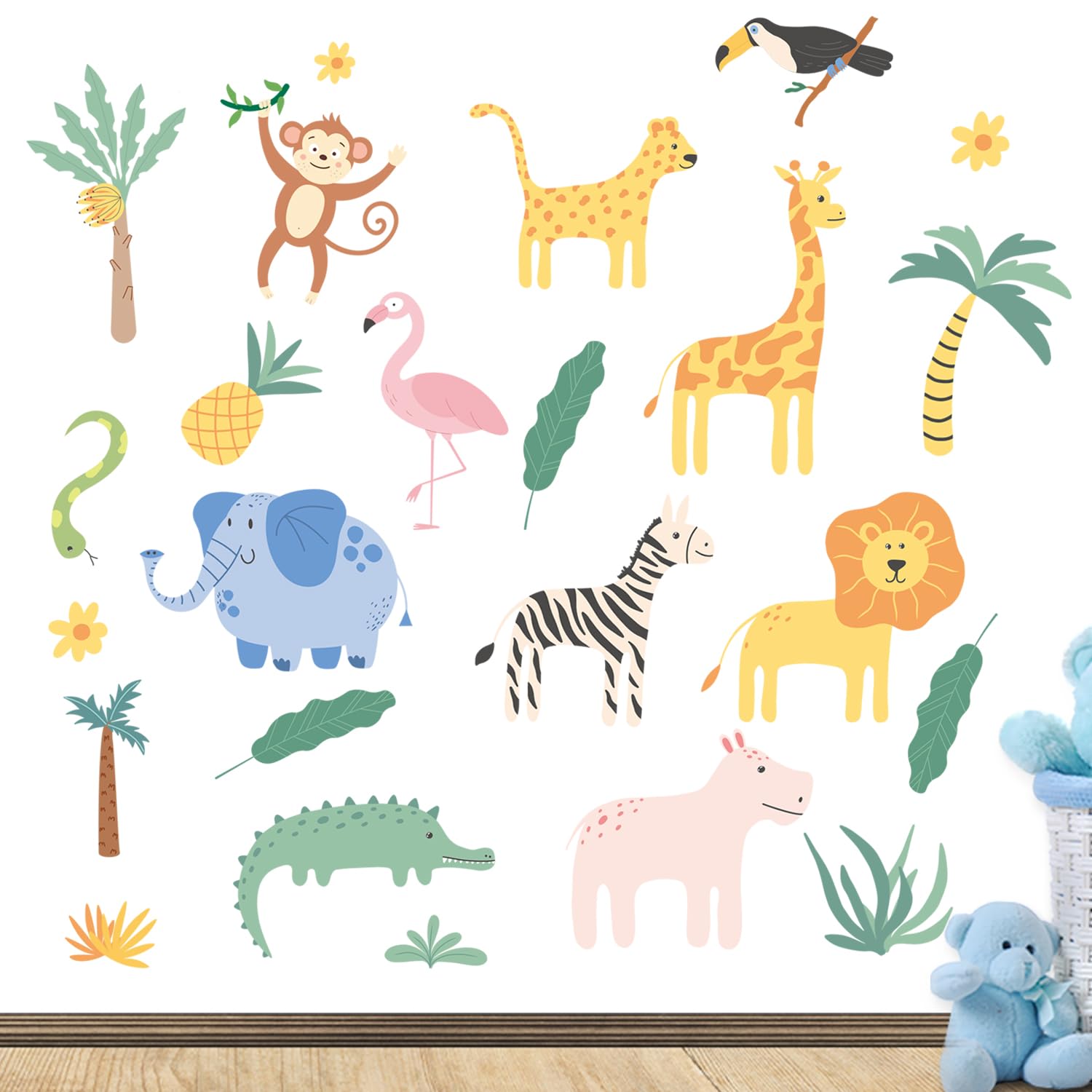 The patterns include elephant, monkey, giraffe, zebra, lion, crocodile, snake, cheetah, plants and other jungle elements that are loved by children.