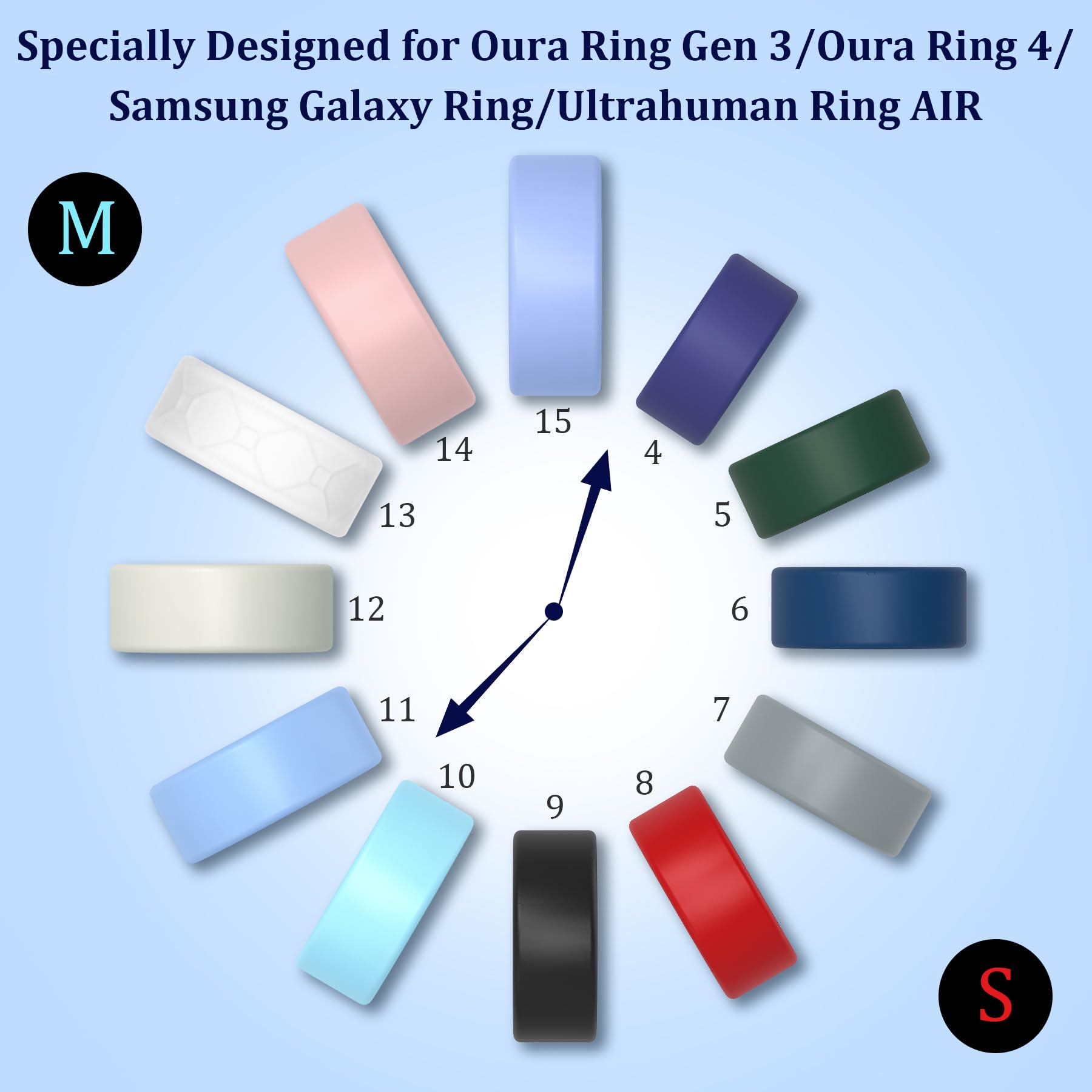 Perfect Compatibility: This silicone cover is compatible with Oura ring gen 3, Oura ring 4, Oura Ring Ceramic, Samsung Galaxy ring, and Ultrahuman ring air. Highly elastic soft material makes Oura ring cover perfectly match the smart ring, without affecting functionality and data accuracy. Available in a variety of sizes, please choose [S] for sizes 4/5/6/7/8/9/10, [ M ]for sizes 11/12/13/14/15.