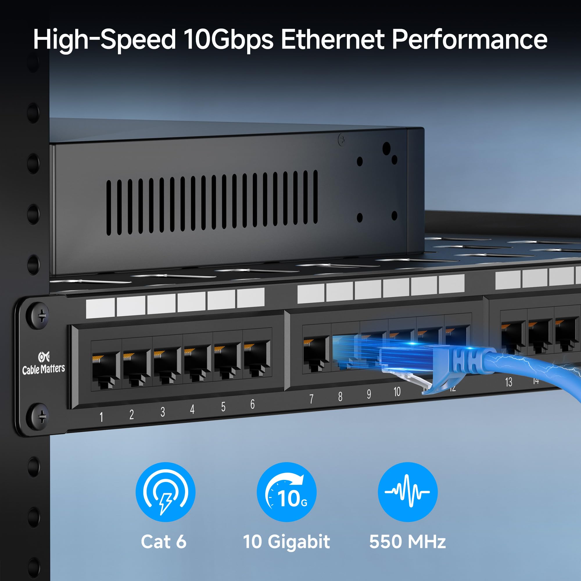 Heavy Duty 24-Port Patch Panel: This robust 24-port Cat6 patch panel supports high-speed Ethernet networks, designed for Cat6 cabling, but also backwards compatible with Cat5e and Cat5 cables. Ideal for Gigabit Ethernet switches, 10Gb network switches, and high-performance networking setups.