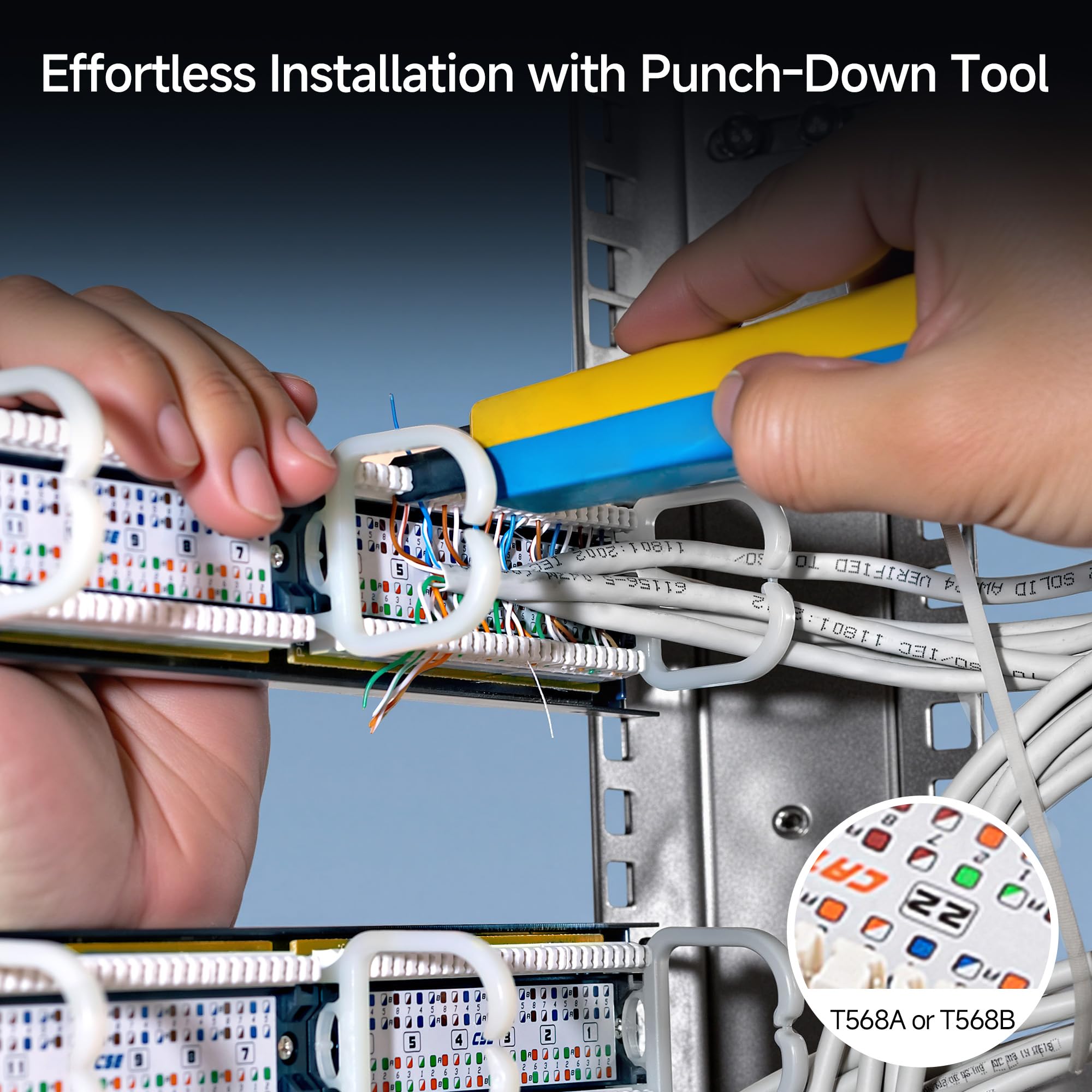 Reliable, High-Quality Connections: The gold-plated contacts ensure a stable, error-free connection. The numbered ports and color-coded T568A/T568B wiring diagrams simplify installation, allowing you to quickly and accurately wire your network for seamless performance.