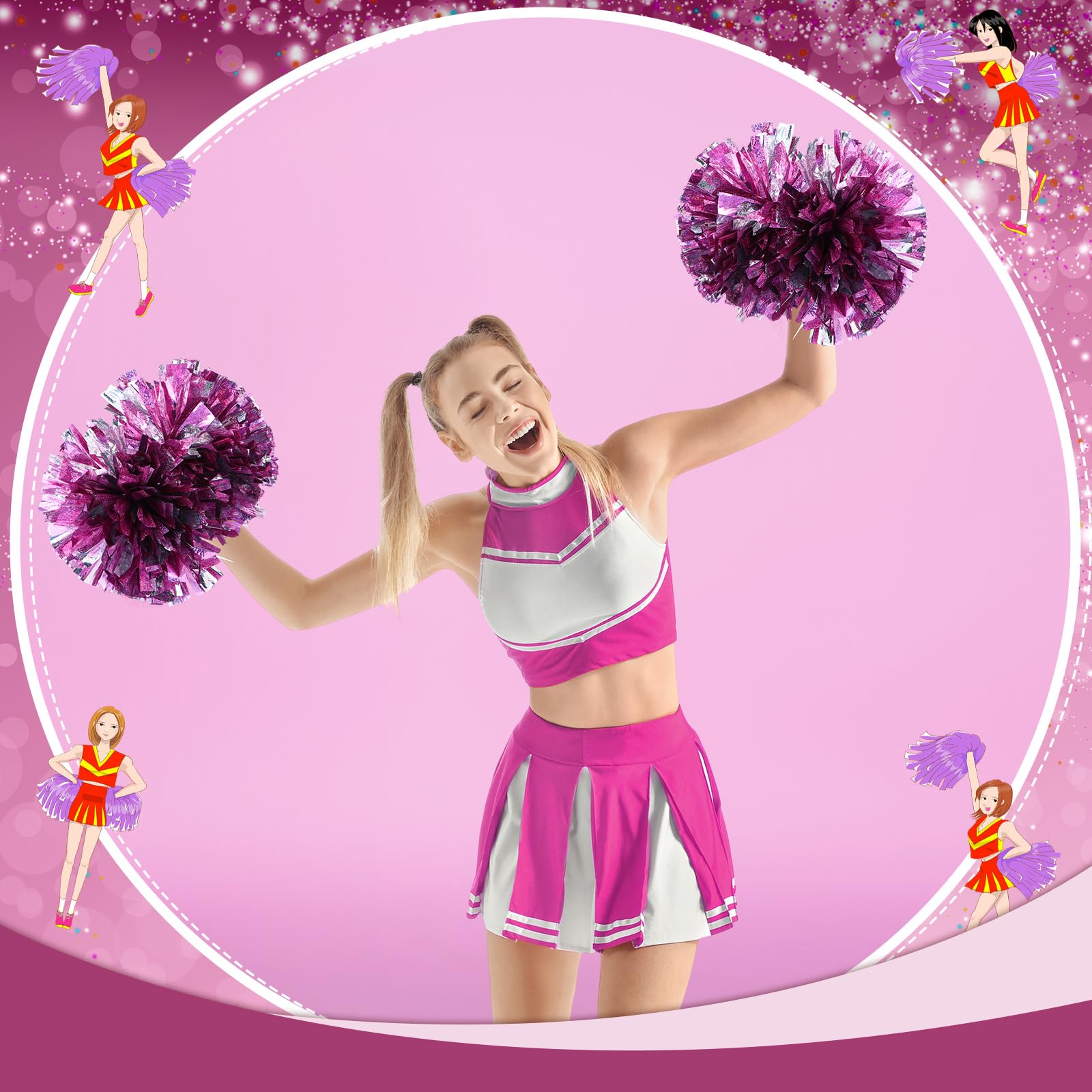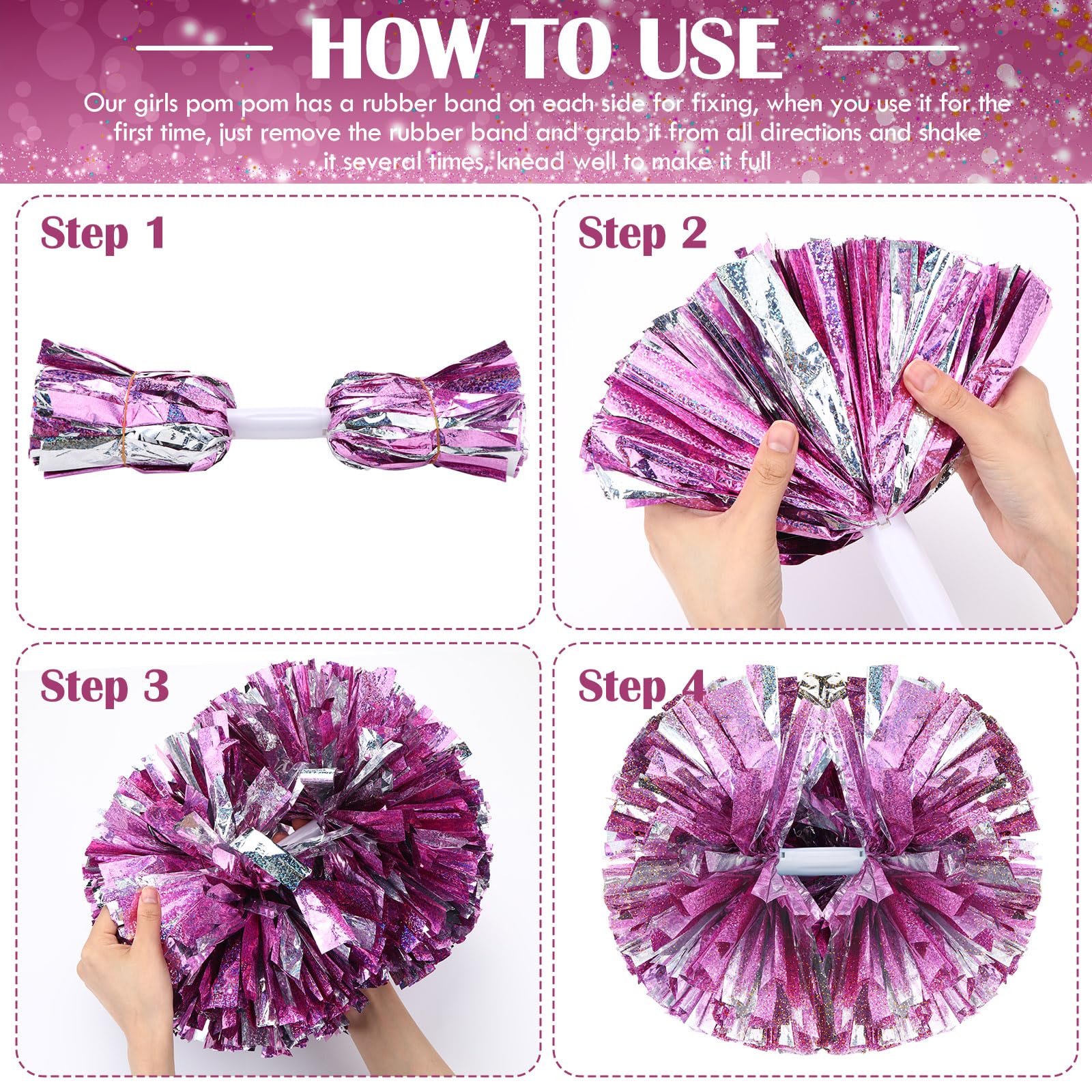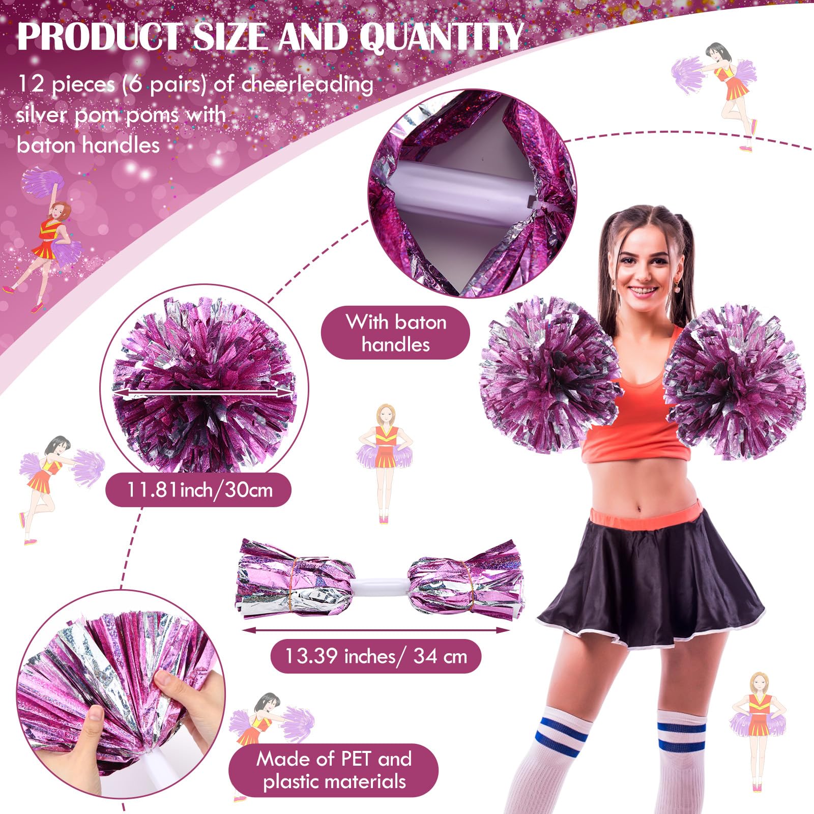 Sufficient Quantity: you will get 12 pieces (6 pairs) of cheerleading silver pom poms with baton handles; Sufficient quantity can meet your daily practice requirements; At the same time, you can also share them with your cheerleading team members
