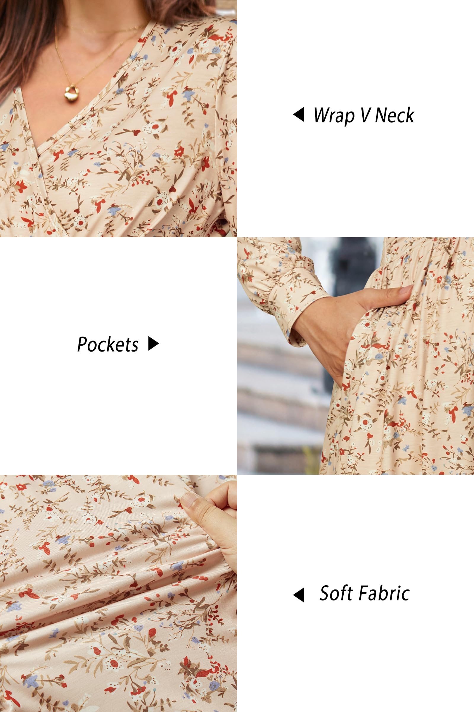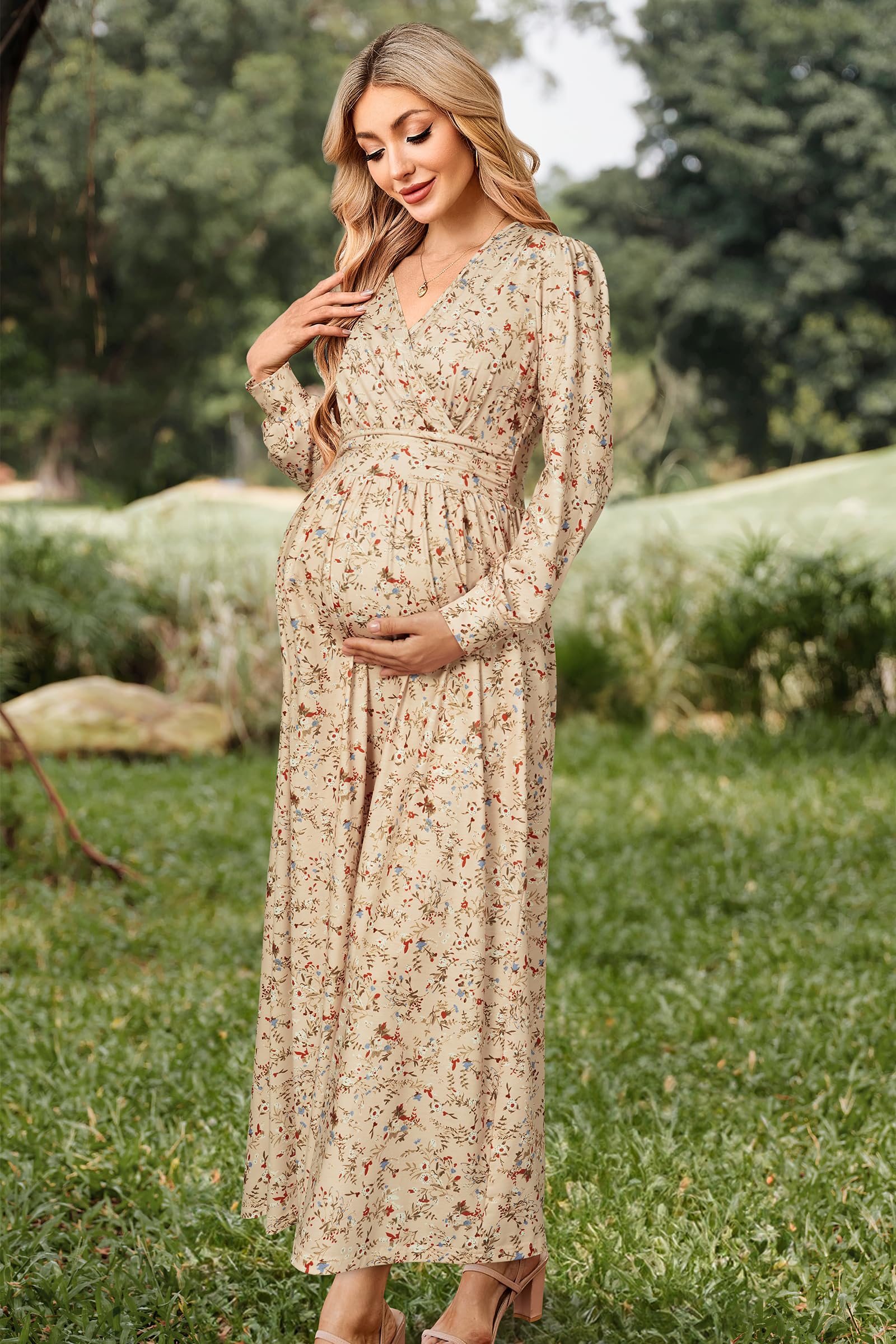 Features: Casual floral print maternity nursing maxi dress features empire waist, long sleeve, deep v neckline and smooth look