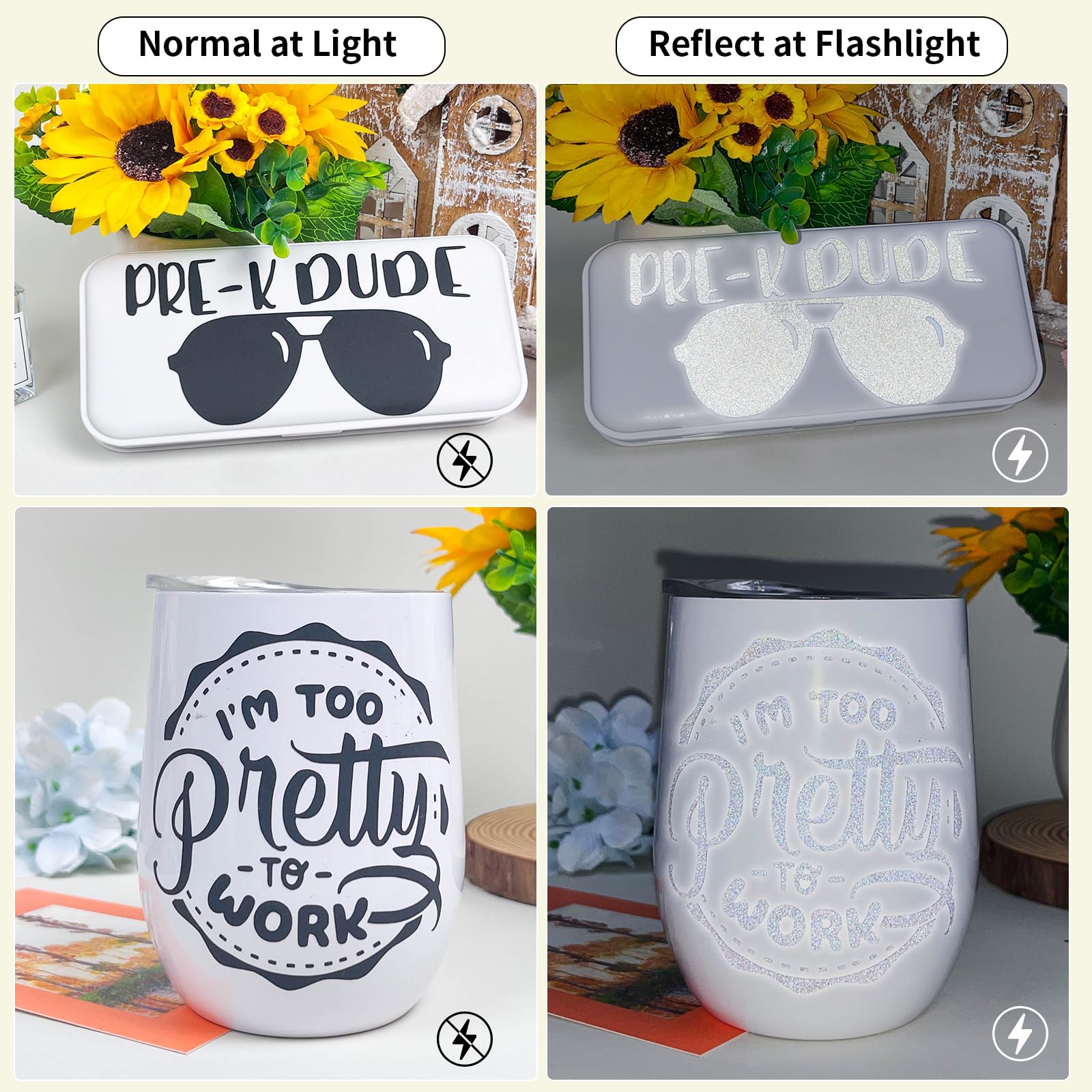 đăWidely Applications ă: Enjoy permanent adhesive vinyl rolls that can be used for Home Decor, wall wrap, Scrapbooking, Lettering, Stickers, Mugs, Mirrors, Laptop, Windows, Banners and any other smooth flat surface. It is especially suitable for night warning sign, guideboard etc., and the reflective signs give you security protection in the dark.