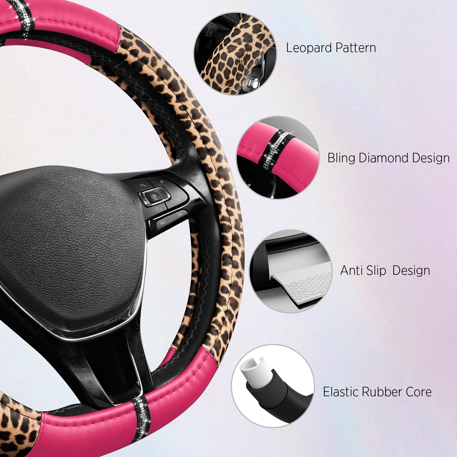 UNIQUE LEOPARD DESIGN - Multi-element stitching, unique leopard and rhinestone splicing, fashion and personality; flat solid interface makes it difficult to fracture, durable, and long service life.