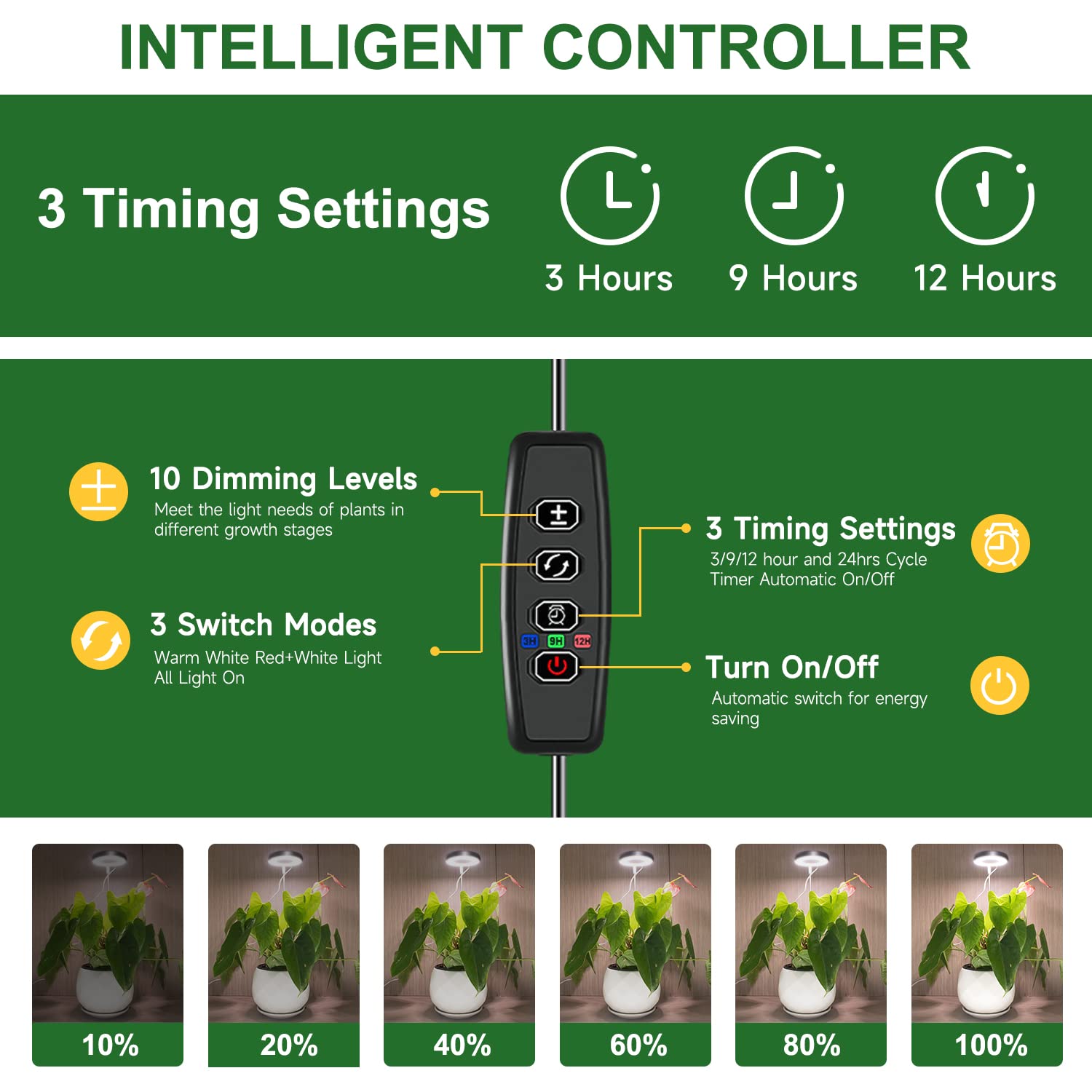 3 Lighting Modes and 10 Brightness: The full spectrum plant grow lights offers 10 levels by pressing the button. 3 lighting spectrum “white light, warm white and red, Mix Lighting”. you have more options to meet different illumination requirements.