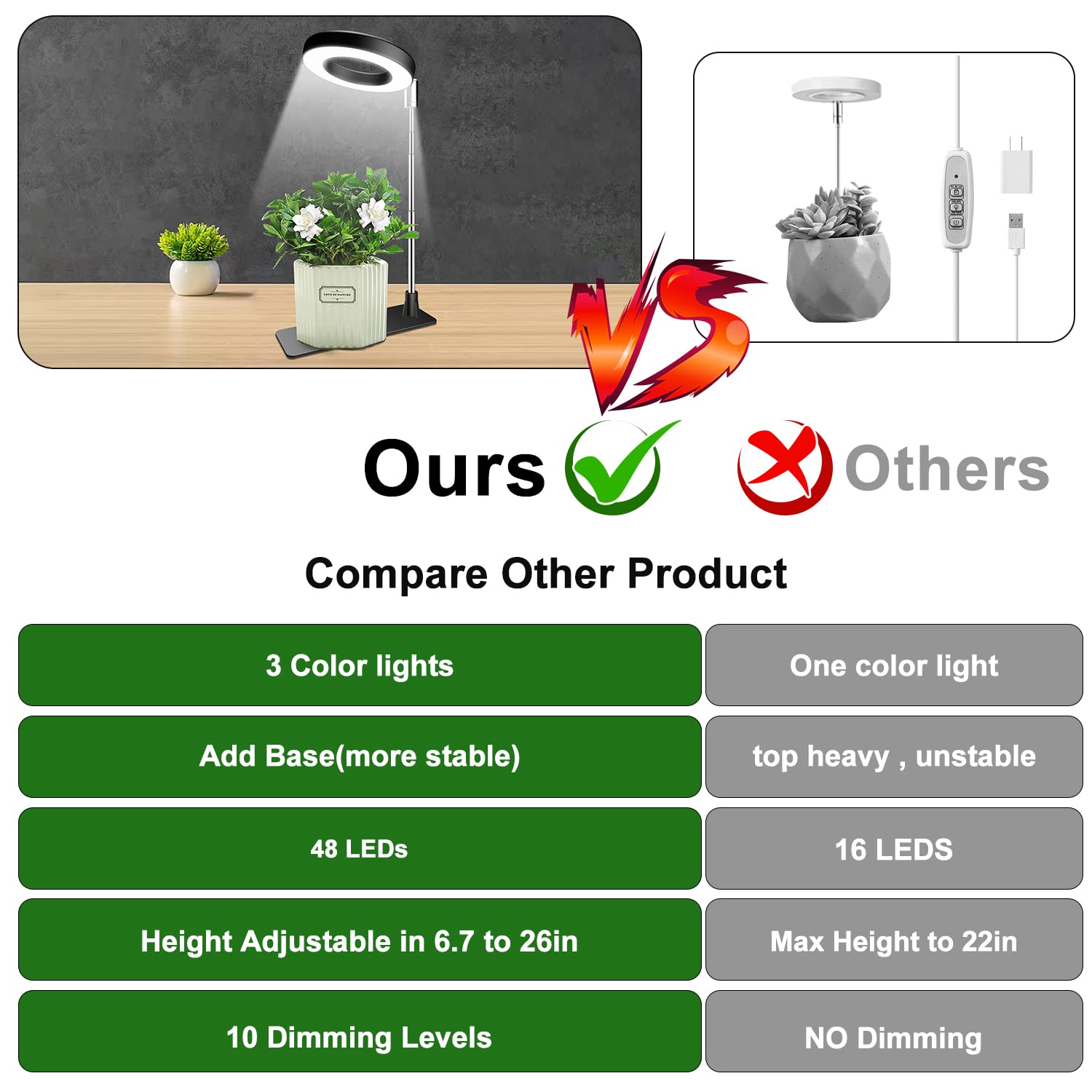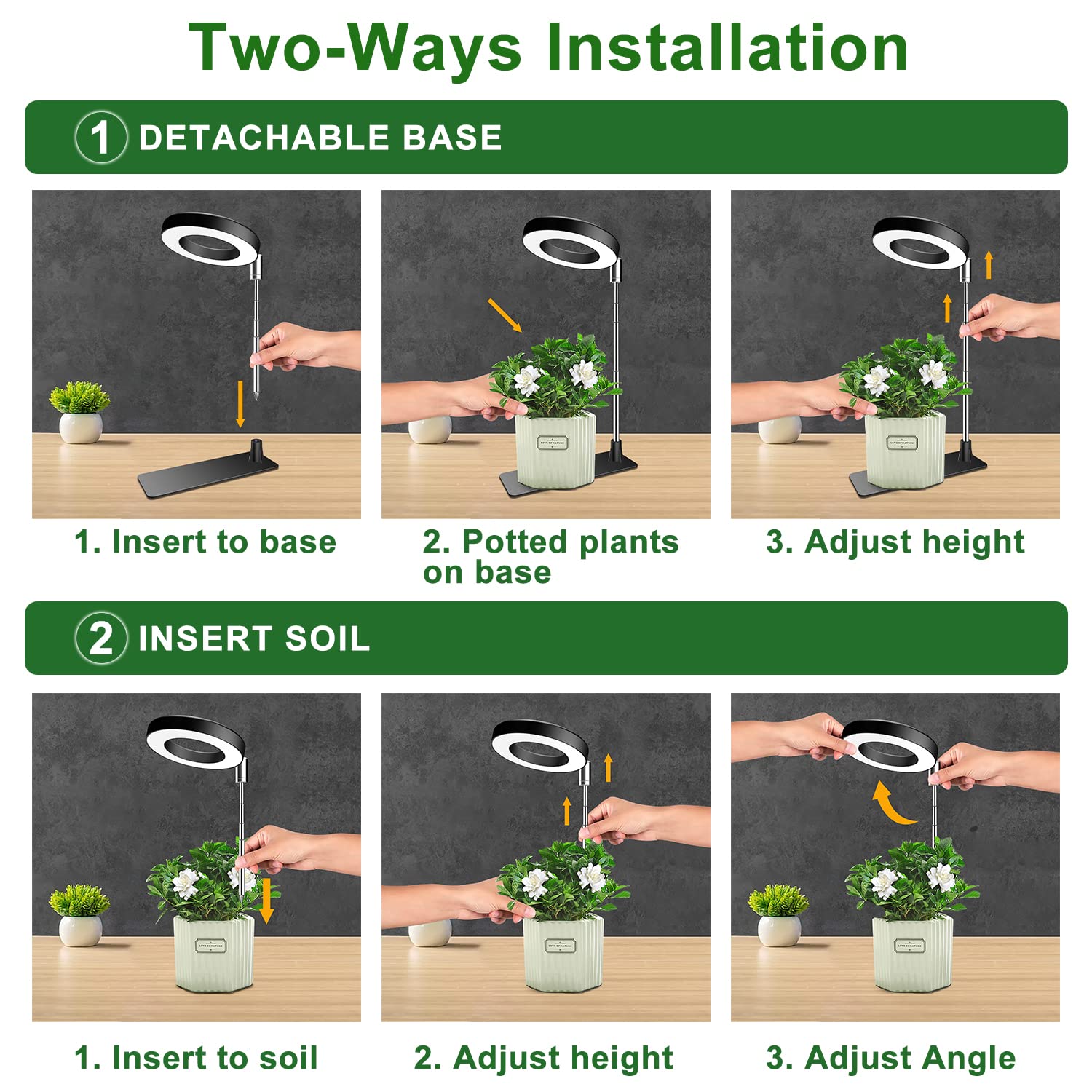 Timer Adjustment: This small halo grow light have set up timer with 3 modes cycle timing function which stay on for 3H, 9H, 12H. When keeping power, it can automatically turn on and off every day according your settings.