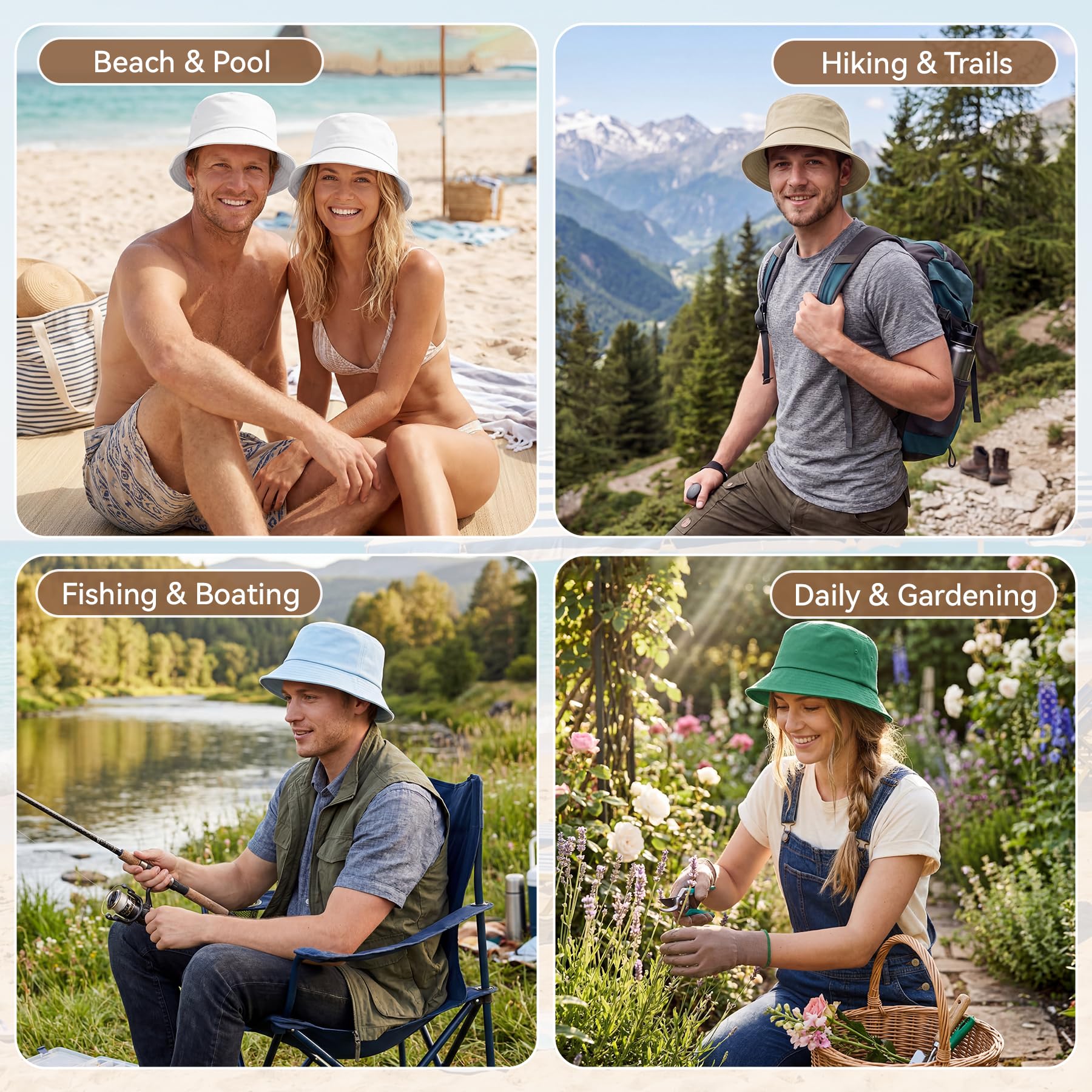 【EFFECTIVE SUN PROTECTION & 360° SHADE】Made from densely woven cotton, this hat acts as a reliable physical barrier to block glaring UV rays. The classic 2.4" (6cm) downward brim provides excellent sun protection and 360-degree shade for your face, ears, and neck during beach trips, hiking, fishing, or outdoor adventures.