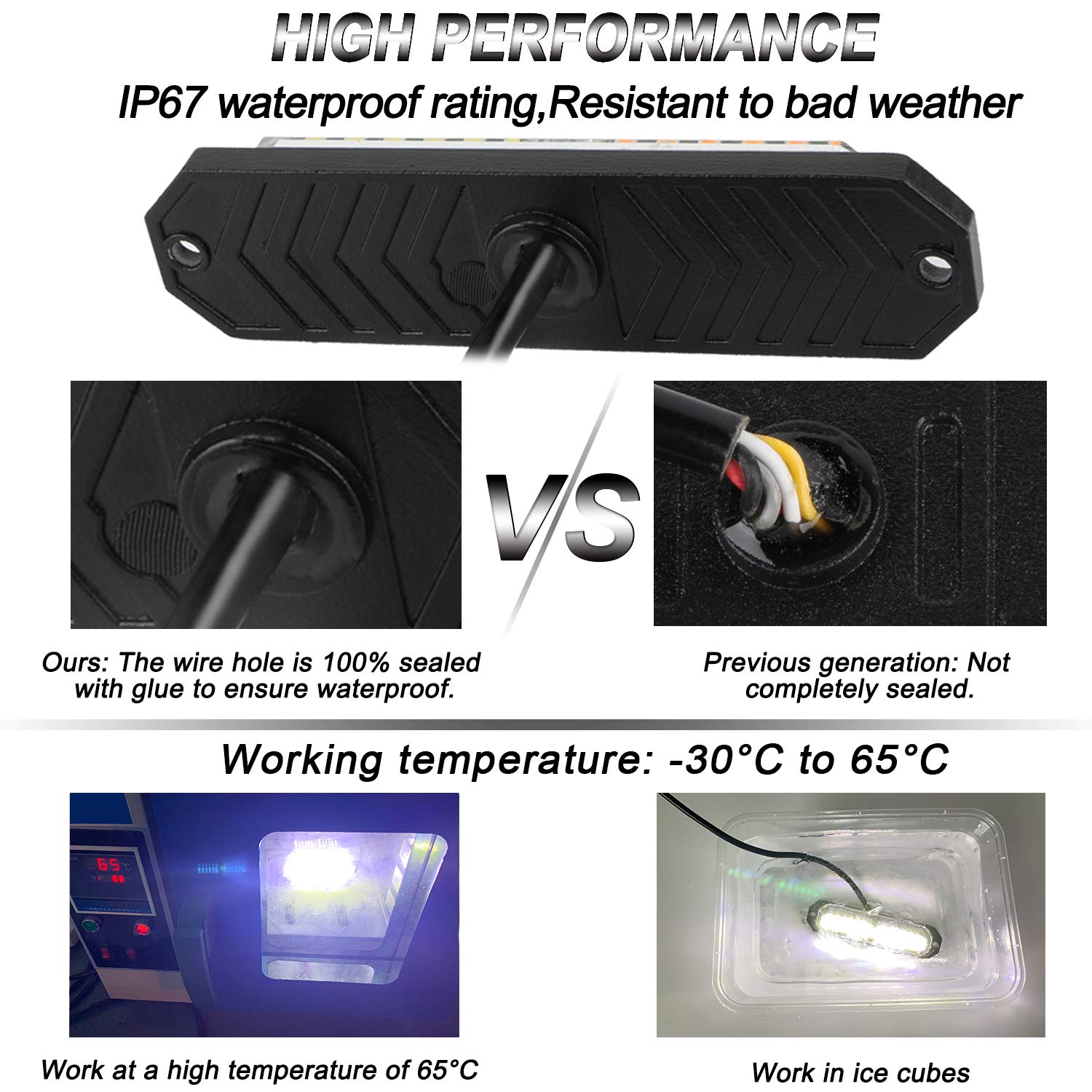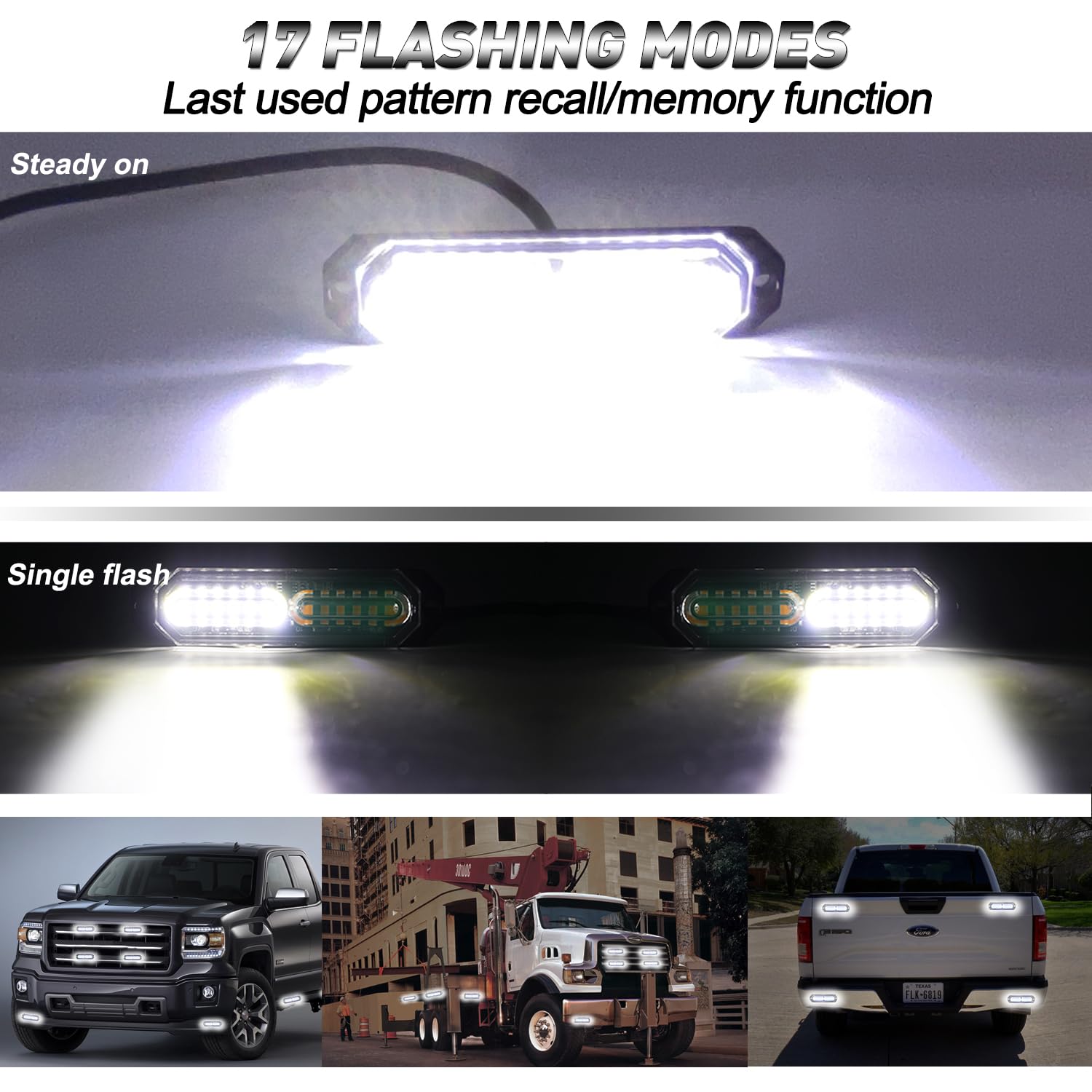 【SUPER VISIBILITY】ASPL 8Pcs 12LED Surface Mount Strobe Lights, each light has a total of 12 high-intensity Led chips. Use aluminum alloy housing + ABS magnifying lens for maximum brightness to ensure more effective warning to other vehicles. These strobe lights can be seen from hundreds of feet away.