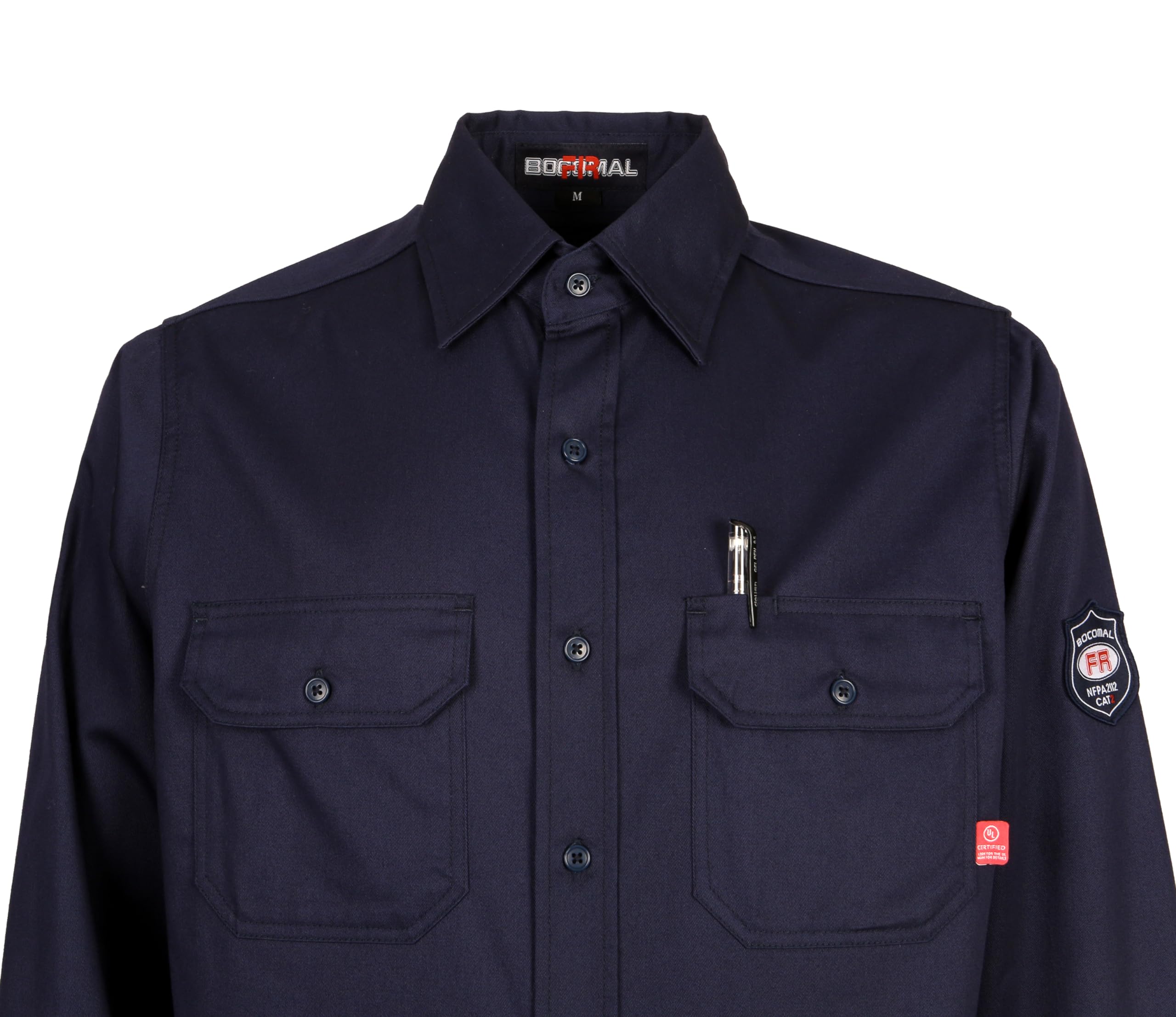 FR MATRIALS LIGHT WEIGHT:Light Water/Rain Repellent and Oil/Stain Resistant 6.25oz Cotton Twill FR Treated,FR Buttons,FR Sewing Threads!Clear FR Tag on arms and bottom front.More FR info On Neck Tag about UL Certification.We Attached A Small Sample Inside Package For Customers Simple FR Try