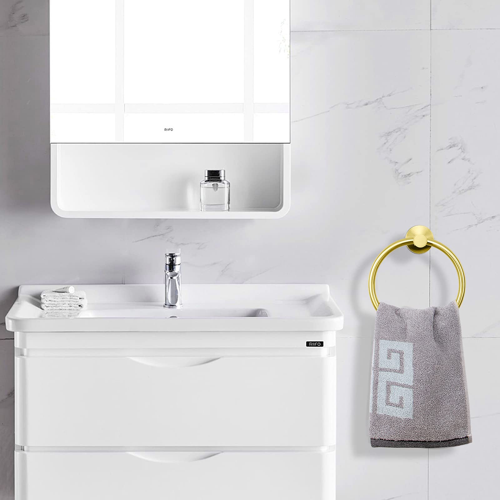 MODERN STYLE: This bathroom towel ring with elegant and stylish look adds a unique and luxury feeling to your home; Brushed gold appearance and round design make your home simple and contemporary