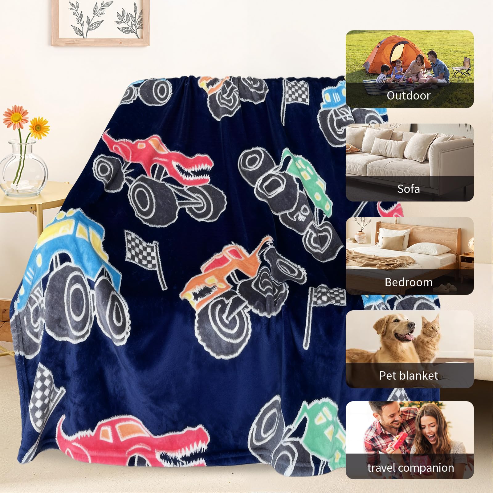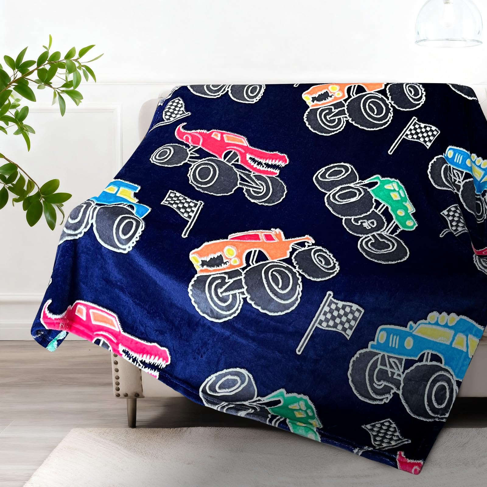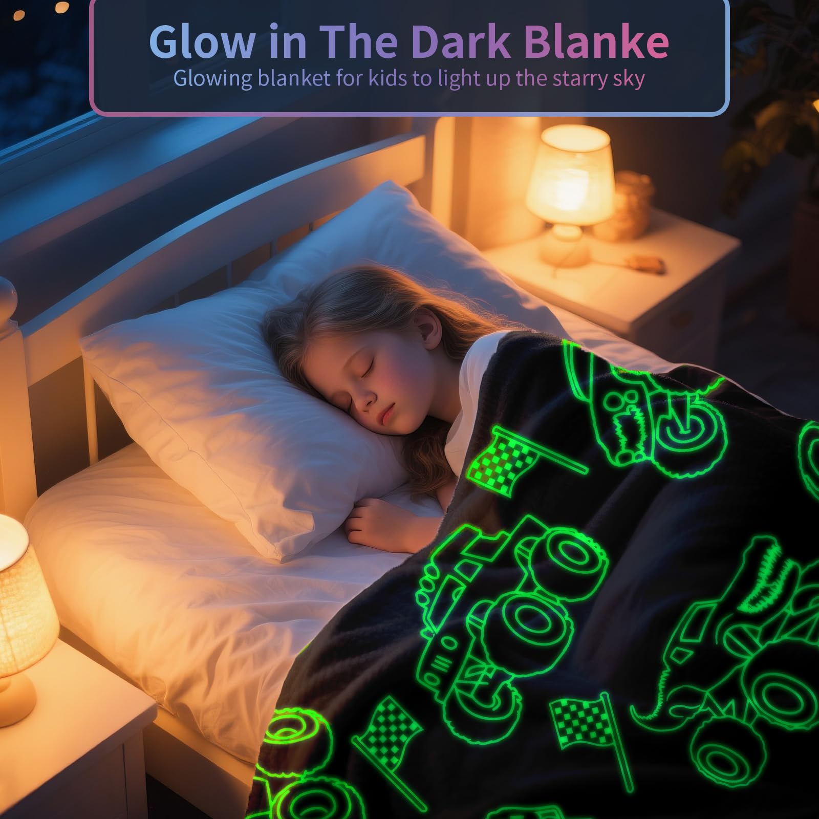 Truck Gifts for Boys: When you're struggling for a holiday or birthday gift, glow in the dark blanket will surprise children, this truck blanket is the perfect choice.