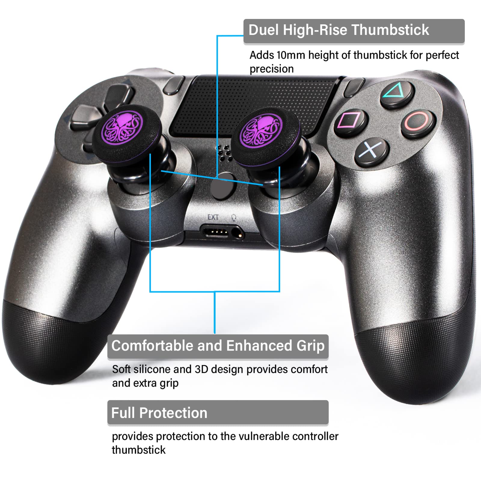 Playrealm Thumbstick Extender & Silicone Grip Cover Sets provide not only more accuracy in first-person shooting games, but also better control and comfort in racing and action games. The extra height with the extender installed on increases moving range for the stick for a same angle, which makes it much more easier to perform a precise aiming, turning and movement. The soft silicone grips also offer ideal comfort and protection. You will find everything under control in any game play with Playrealm's sets on. Compatibility: Fit offical Playstation 5 (PS5),Playstation 4 (PS4/Slim/PRO) controller, Do NOT fit any third party controllers; Material: Thumbstick Extenders: Plastic/PC Thumb Grips: Silicone Package Content: Thumbstick Extender x 2 Thumb Grips x 2 Notice: Controllers are not included; Please clean the thumb grips by cloth or tissue before use for best performance; Keep the sets away from baby under 3 years old; Keep the sets away from heat sorce and acid. 1 year warranty, any problem please contact us.