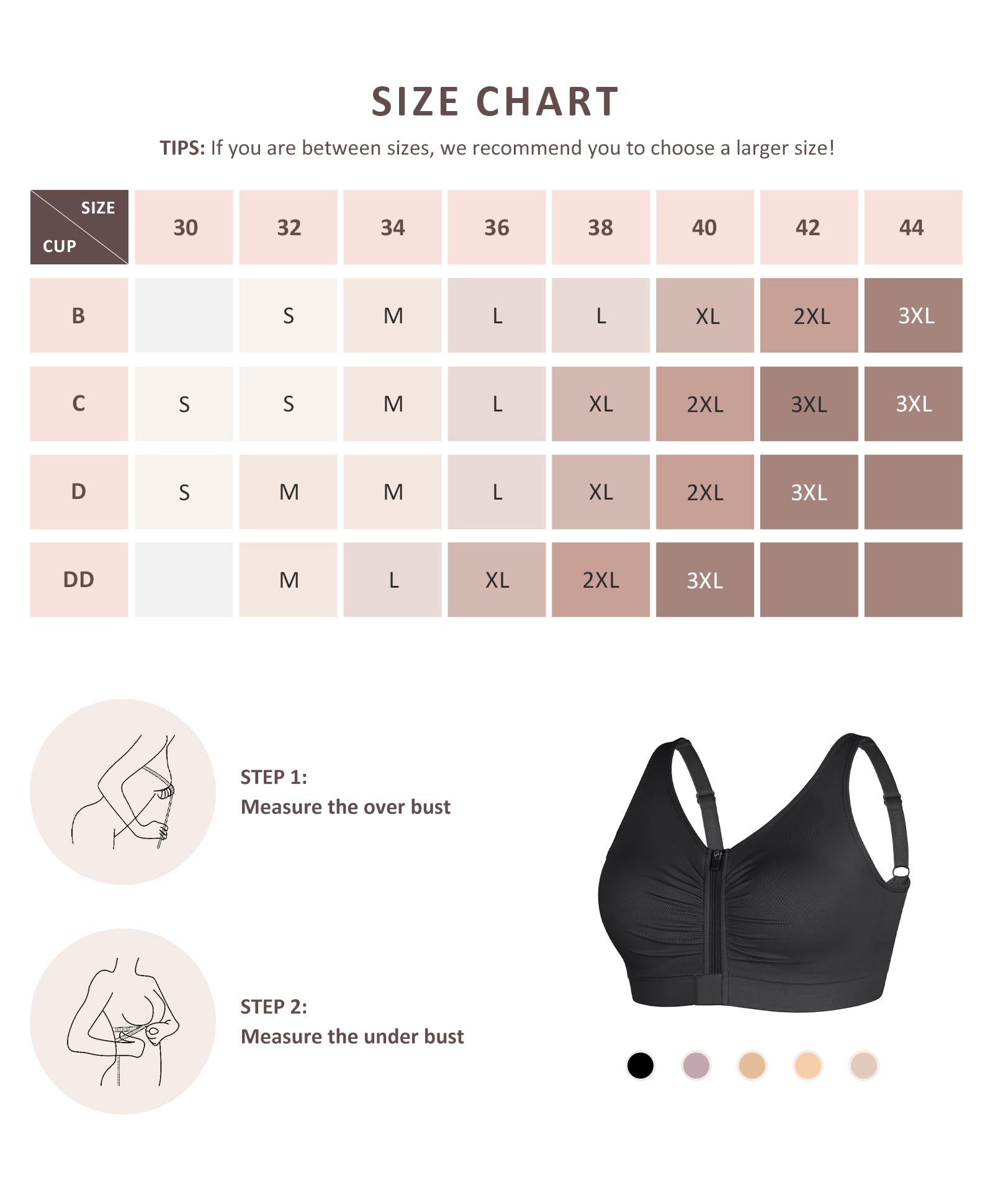 ZIP FRONT CLOSURE: Our post-surgery bra features a convenient front zip closure, allowing for easy on/off without needing to reach around back. The semi-automatic lock zipper provides security, locking when pulled down and sliding smoothly when lifted up. We've also added a protective layer inside the zip to prevent scratching, ensuring both comfort and functionality in one.