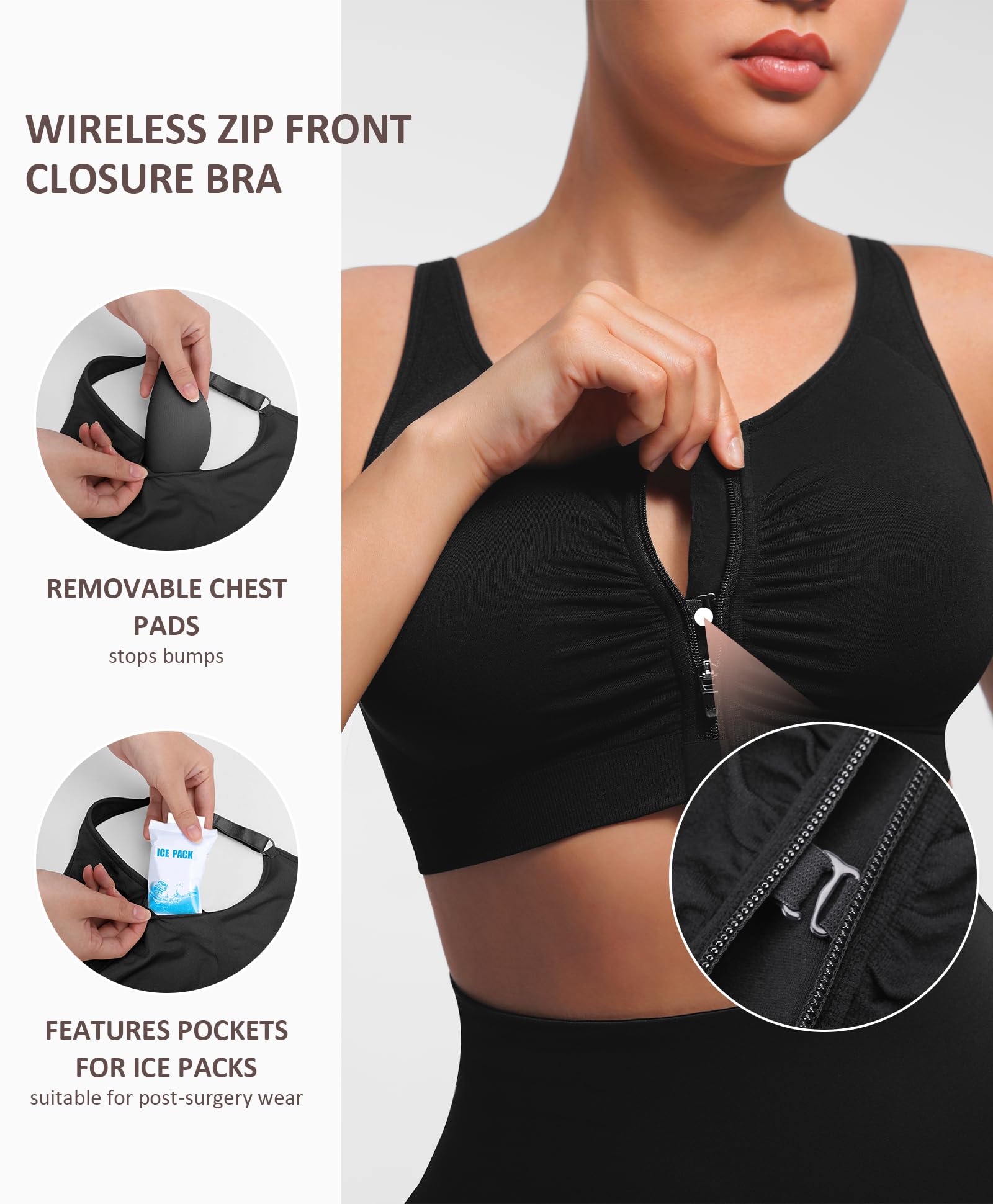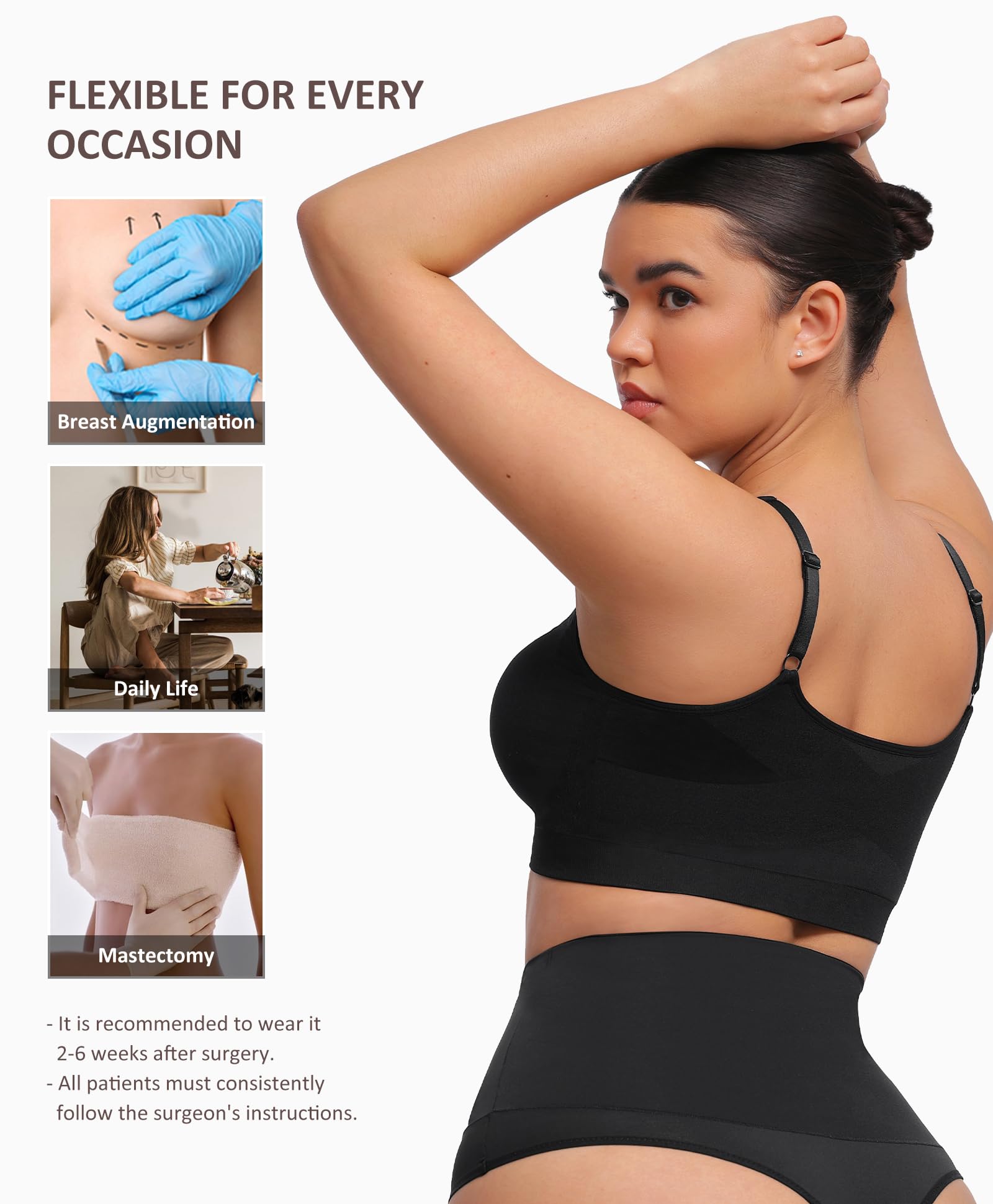 SUITABLE FOR DAILY WEAR AND POST-SURGERY RECOVERY: Crafted from a soft, skin-friendly fabric, this bra minimizes irritation to your skin and incisions. Featuring a double-layer design with removable pads, it allows you to insert ice packs for optimal post-surgical care, ensuring comfort and functionality. But it is recommended to wear it 2-6 weeks after surgery. All patients must consistenly follow the surgeon's instructions.
