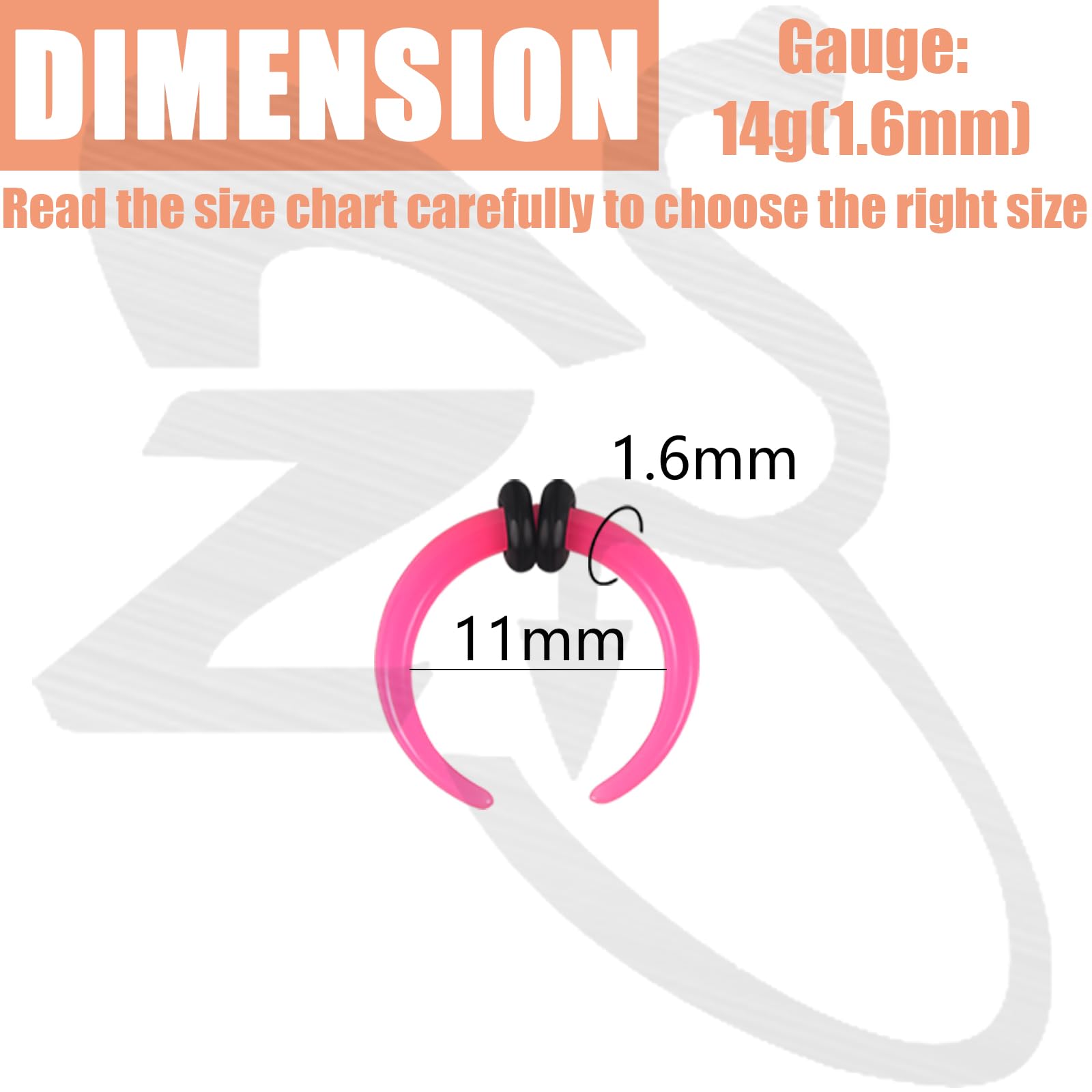❀Acrylic Buffalo Tapers Size——Crescent stretching expander rings gauge: 14G, 12G, 10G, 8G, 6G, 4G, 2G, 0G, 00G. C shape earrings taper inner diameter: 11/13/13.5/15/16/18/22/25mm. Stretcher taper kit color: blue, pink, white, black. Wearing cool 14g-00g ear stretching kit makes you more elegant and charming.