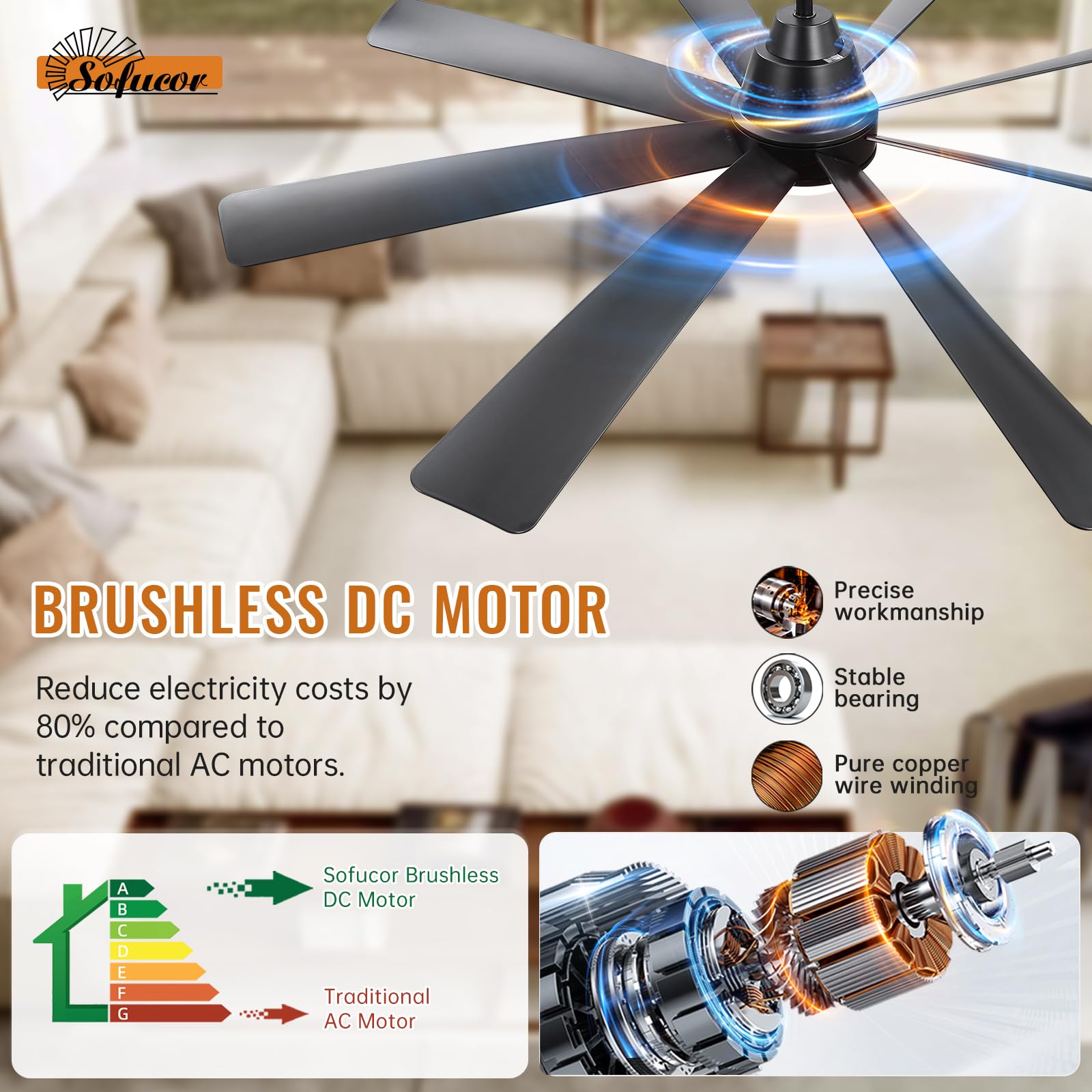 Brushless DC Motor: New generation of DC motors with pure copper wire windings can reduce electricity costs by 80% and have a lifespan at least 10 years longer compared to traditional AC motors. Sofucor black ceiling fan runs extremely quietly (30dB)