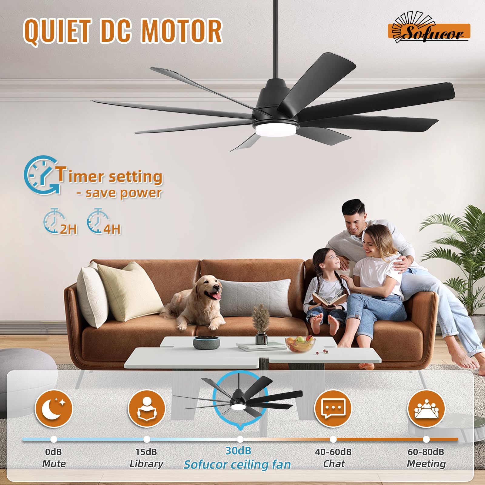 72 Inch Ceiling Fan: Sofucor large ceiling fan stylish design fits modern and industrial styles. Moisture-resistant finish, perfect for any indoor(18ftx18ft -35ftx35ft) and covered outdoor space such as living room, office, restaurant, garage, patio