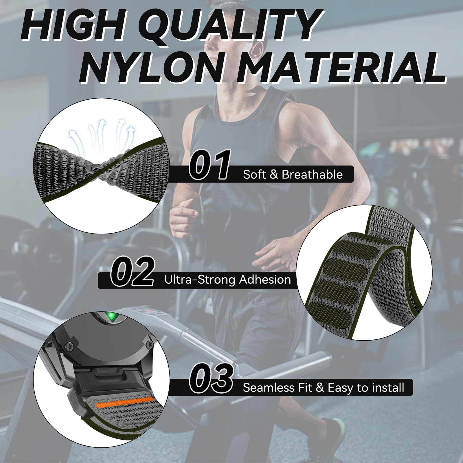 【Adjustable Elastic Strap】Compatible with Garmin Fenix 6 straps/Garmin Fenix 5 straps/Garmin Fenix 7 arm/ankle straps. Features 5 strong fasteners for customizable length adjustment. The 26mm arm/ankle strap fits arm sizes from 7.1 inches to 13.7 inches (180mm-350mm), ensuring a comfortable fit regardless of arm thickness.
