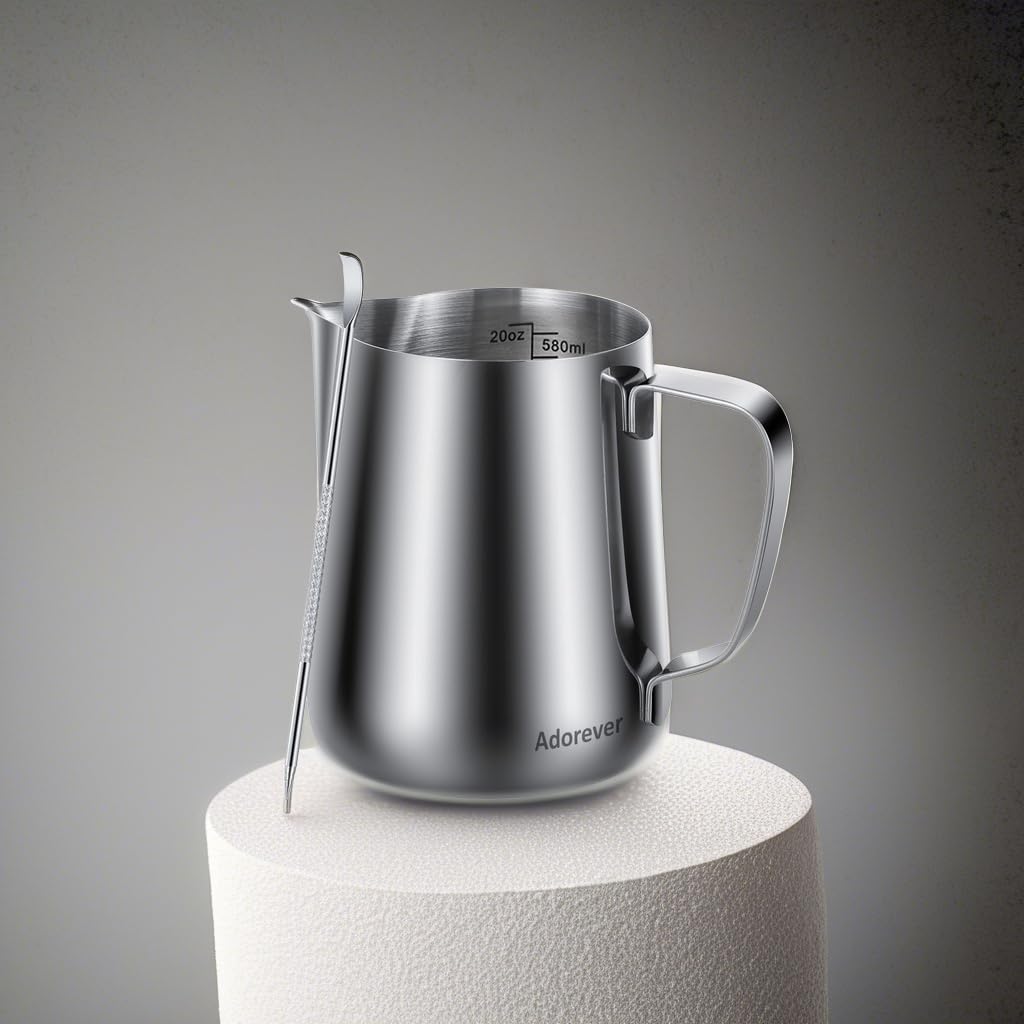 Perfect Combination Of Milk Frothing Pitcher And Latte Art Pen: The milk frother pitcher can be used in different ways: froth or steam milk for lattes; measure liquids; serve milk or cream; breast milk pitcher. Featured with a latte art pen can shape kinds of beautiful coffee pattern. Perfect for making frothing or steaming milk for espresso, cappuccino or hot chocolate. Great espresso accessories kit for latte mugs and espresso cups. Be your own barista in home and office.