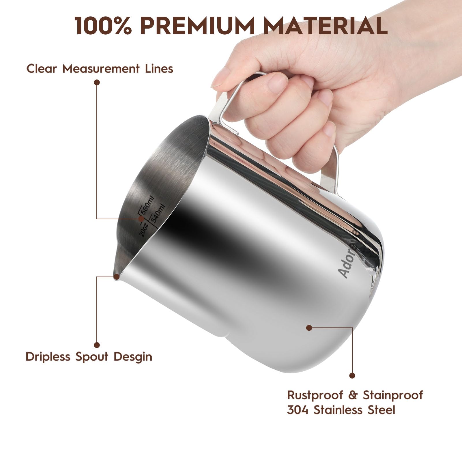 Premium Quality: The milk steaming pitchers and coffee art pen are made of chrome finished #304 stainless steel. Rust-proof, stain-proof, heat-proof, unbreakable by daily use.