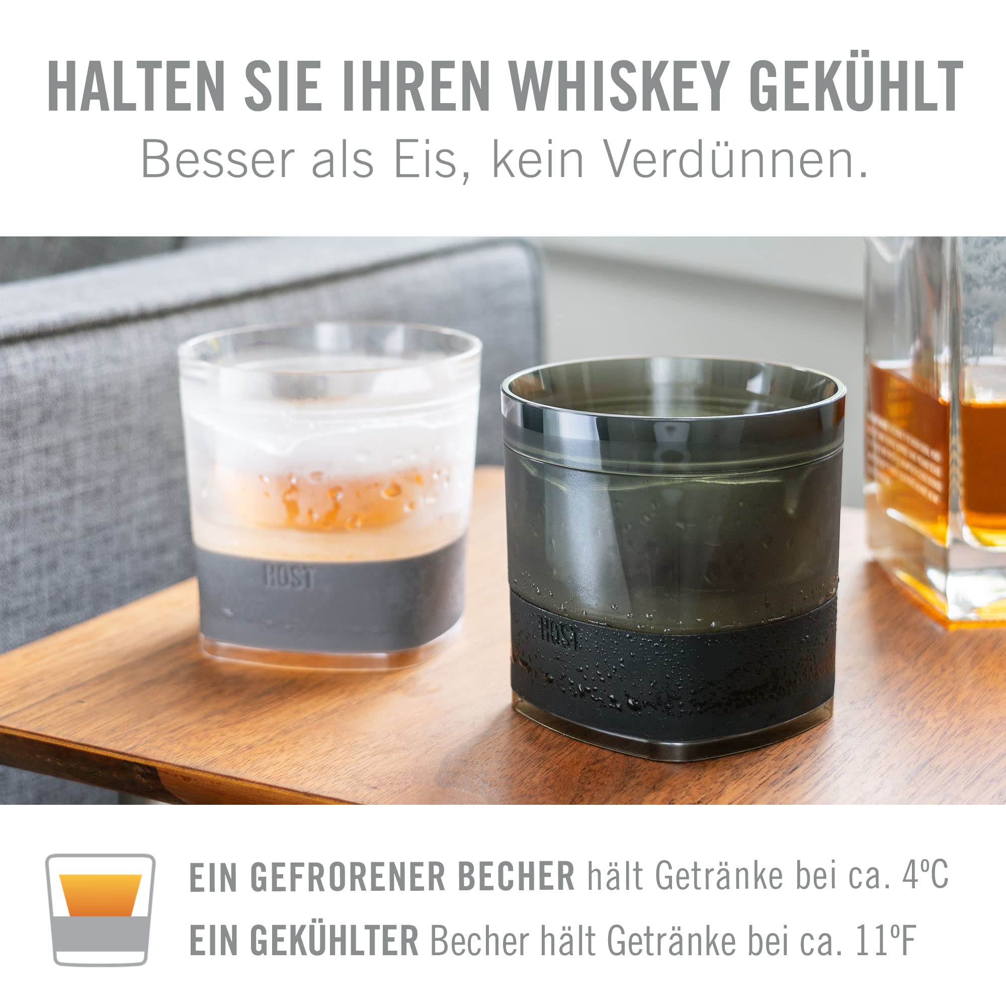 KEEP WHISKEY CHILLED WITH NO DILUTION - Bourbon and scotch benefit from a well-designed drinking experience. The Host Whiskey Freeze cocktail glasses are engineered specifically to keep whiskey chilled without watering it down.