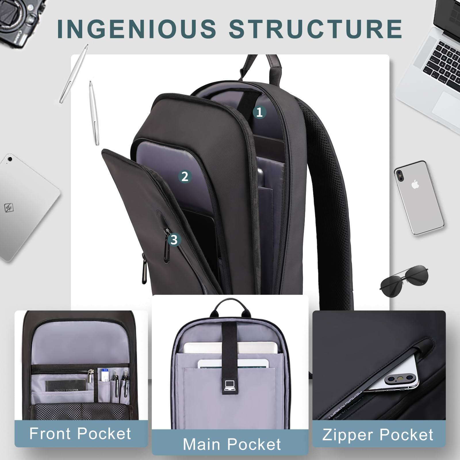 【Easy to Organize】This laptop backpack for men has various practical compartments and pockets: main pocket*1, front pocket*1, padded sleeve for laptop *2, mesh pocket *4,normal pocket*3, zipper pocket*3, pocket for pen*3, card pocket*1. Can provide roomy space for your laptop(fits up to 15.6"), iPad, folder, pens, books, purse, tablet, power bank, ect. Keeping your items organized and easy to find.