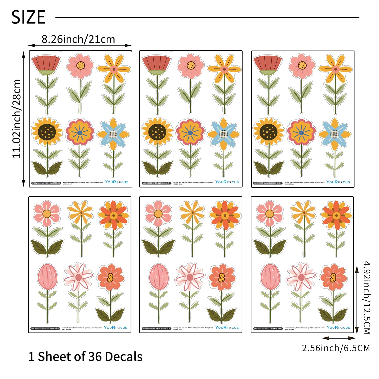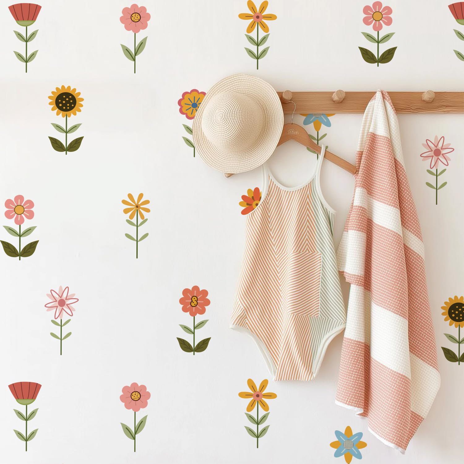 Boho-Inspired Floral Charm: Bring a fresh and joyful atmosphere to your home with these boho flower wall decals. The colorful hand-drawn blooms and soft earthy tones create a relaxed, free-spirited vibe that perfectly complements modern boho and minimalist decor styles