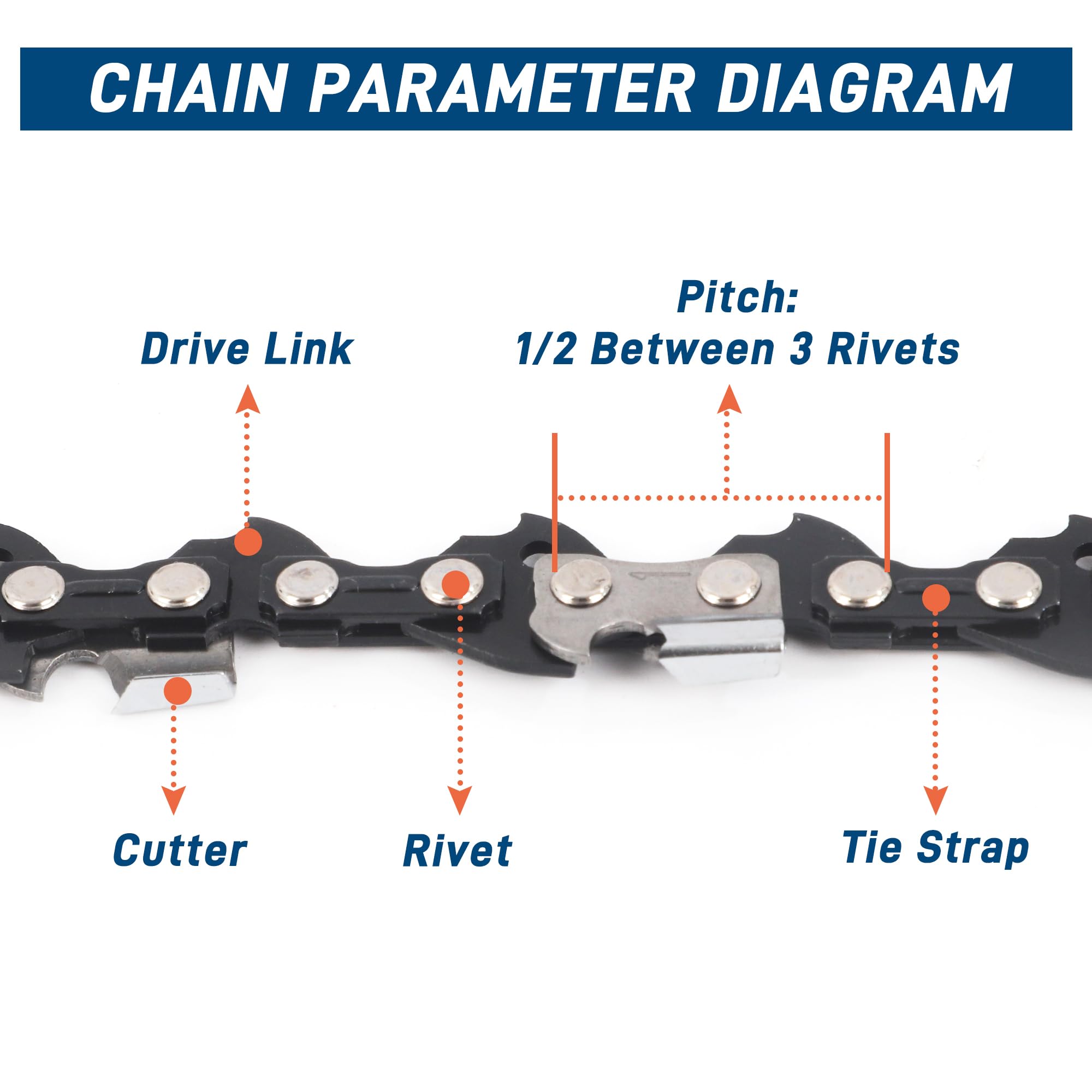 Note: Every saw chain comes with protective oil, resists corrosion. If you have any problems or concerns about the compatible machines, please feel free to contact us.