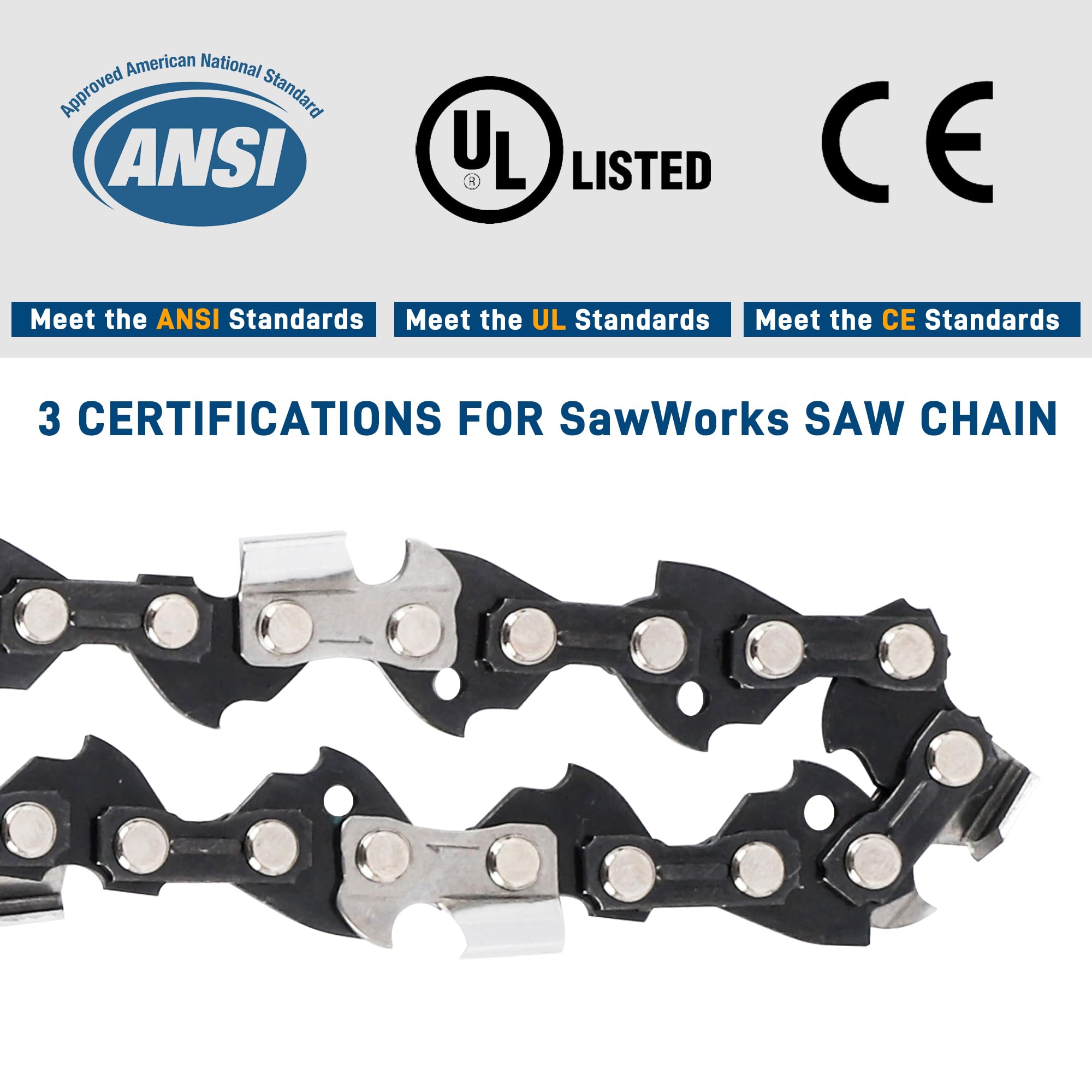 SawWorks 3-Pack 20 Inch Chainsaw Chain, 325" Pitch .058" Gauge 76 Drive Links for Supmix 62cc, WEMARS ‎6220G, NEOTEC NCS6200, Blue Max 53543, 52209, 8901, 8902 and More