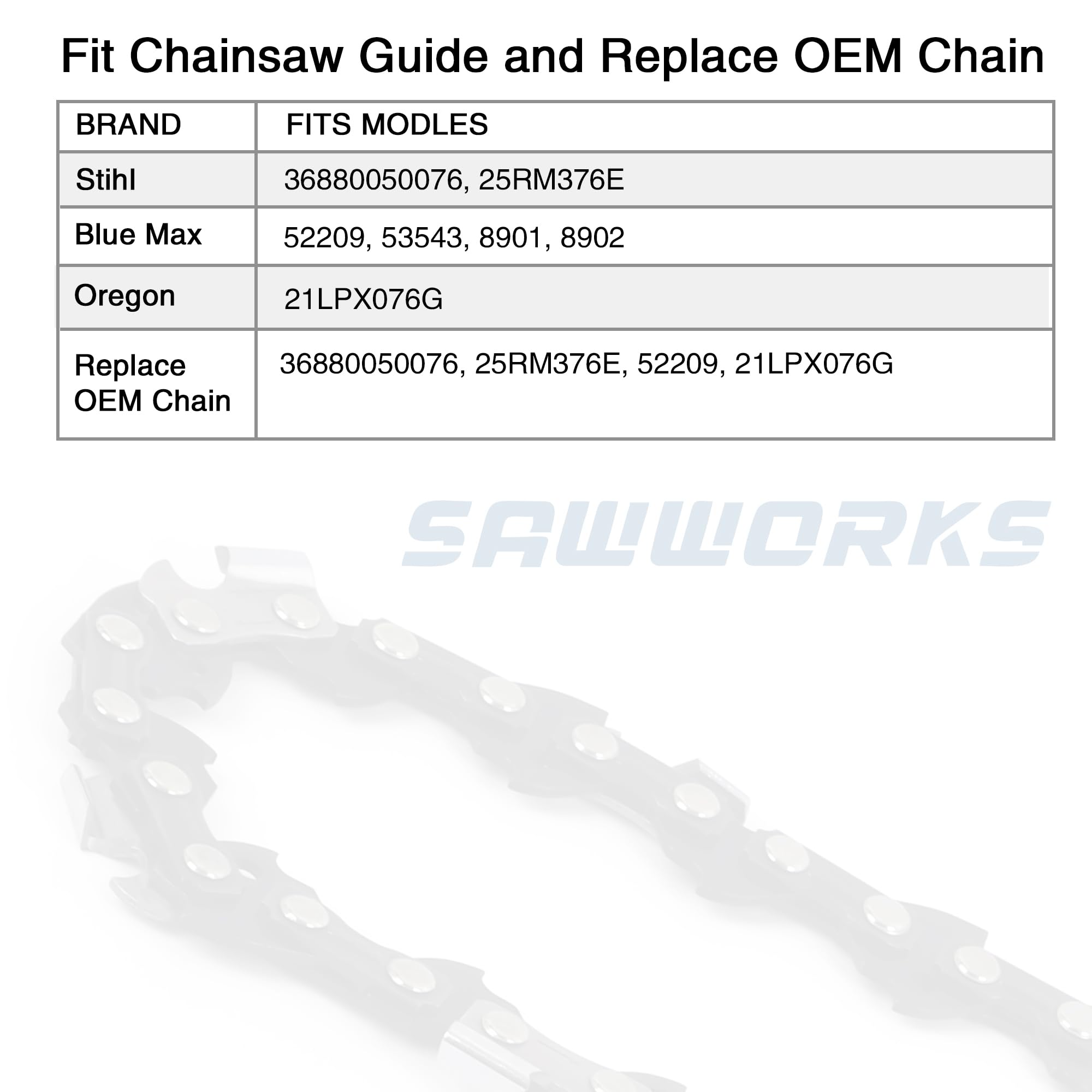 Fits Chainsaw Brands: Supmix 62cc, WEMARS ‎6220G, NEOTEC NCS6200, Blue Max 53543, 52209, 8901, 8902, Oregon 21LPX076G. (See the detail page for more information.)