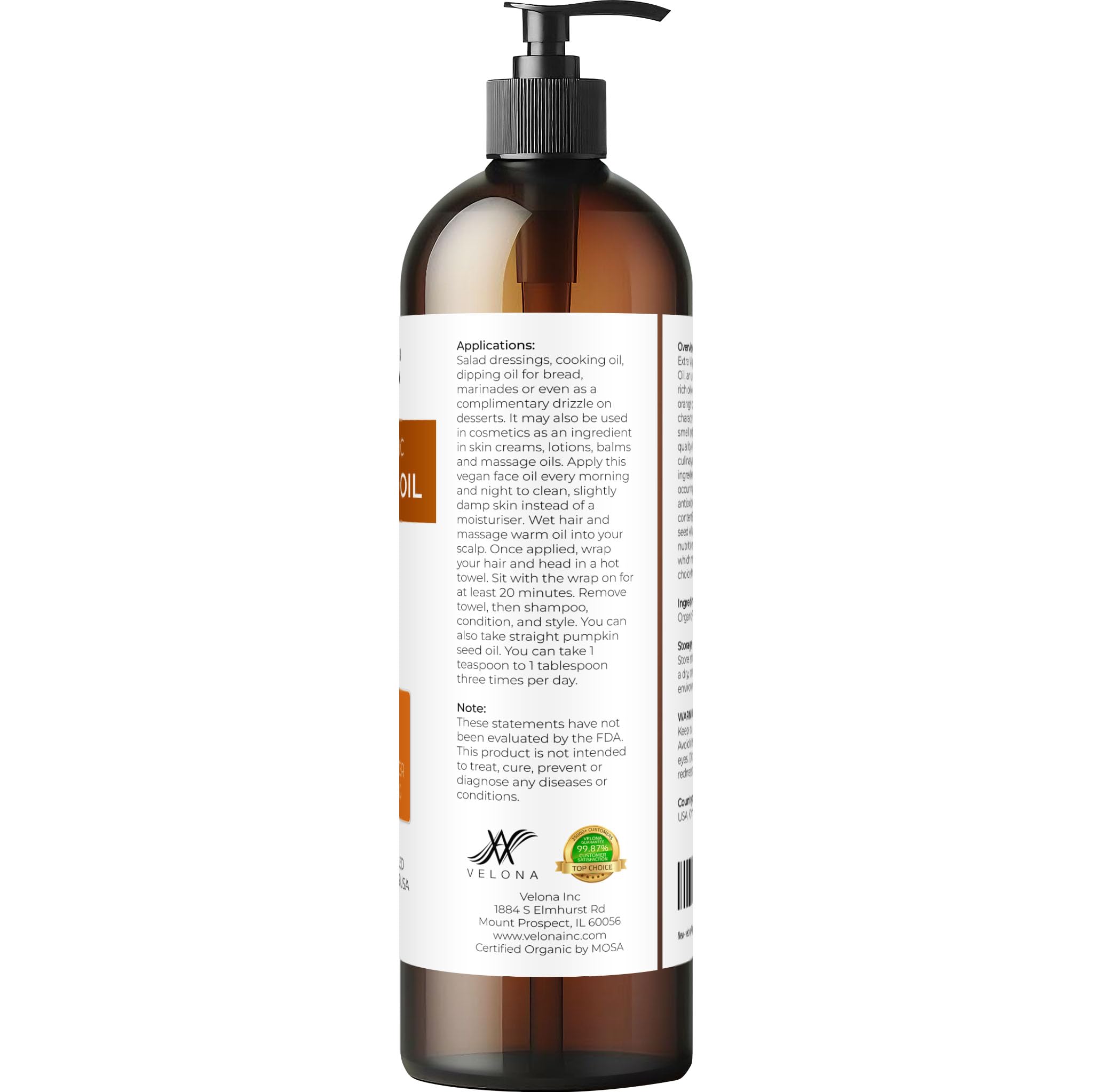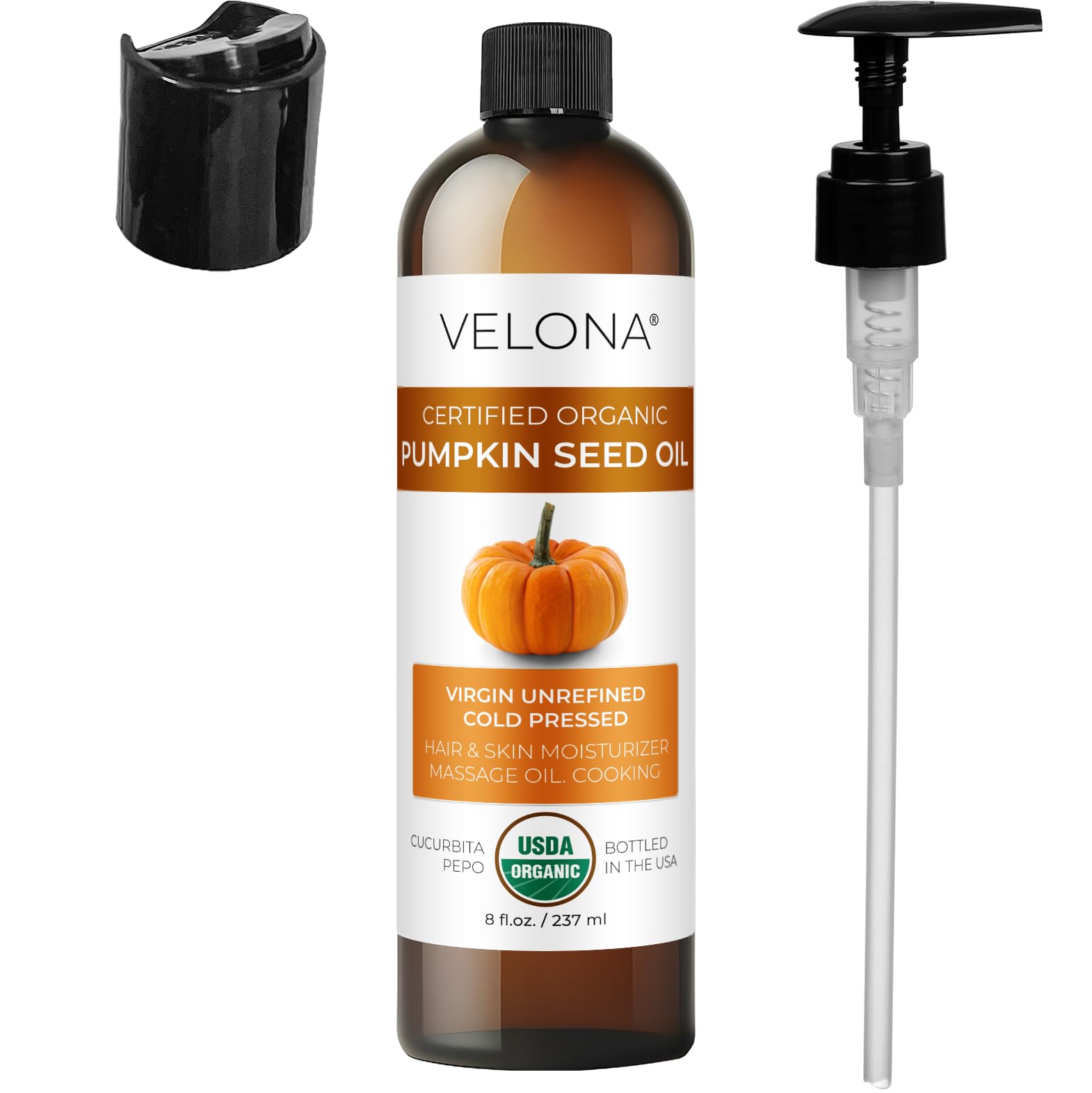 USDA Certified Organic Pumpkin oil: 100% Pure and Natural. Cold pressed. Not Diluted, Non-GMO, No Additives, No Fragrance, Chemical Free, Alcohol Free.