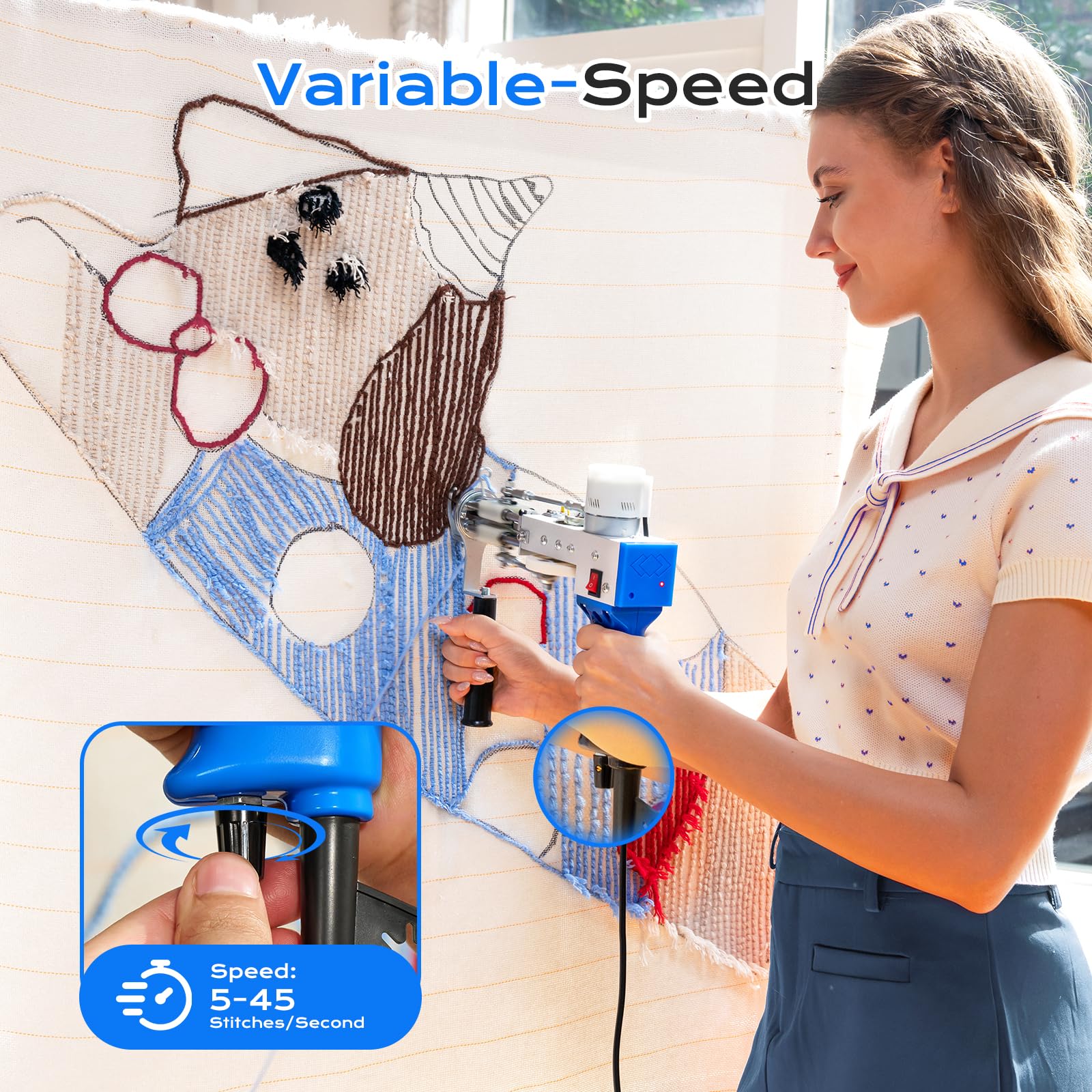 Efficient Working: The rug maker machine starter kit uses a high-power power supply, and the power is more powerful. This carpet making kit can reach a speed of 5-40 stitches/s, and a No-Load speed of 10000r/min, which makes the production efficiency 80-100 times higher than traditional manual creation;(Tips: Be sure to pull the tufting cloth tightly during the tufting)