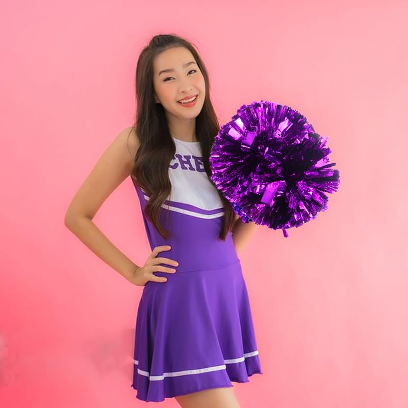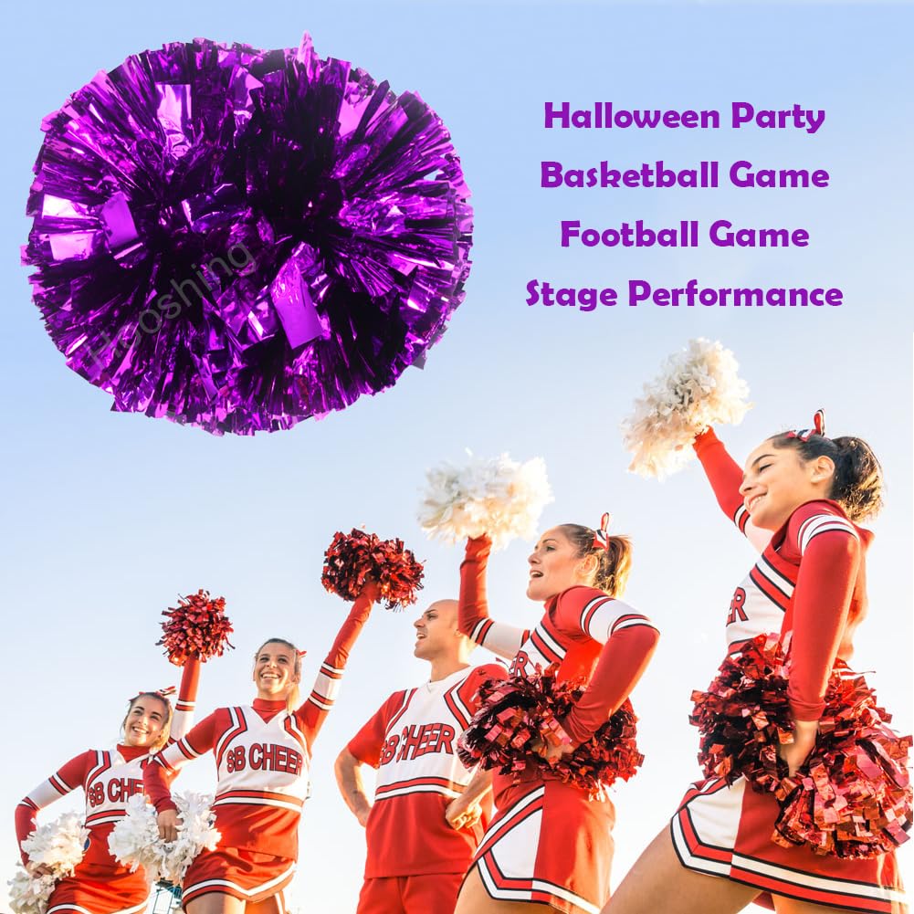 【Quality Material】These cheerleader pom poms with white handle are made of metallic plastic. Lightweight and reusable.