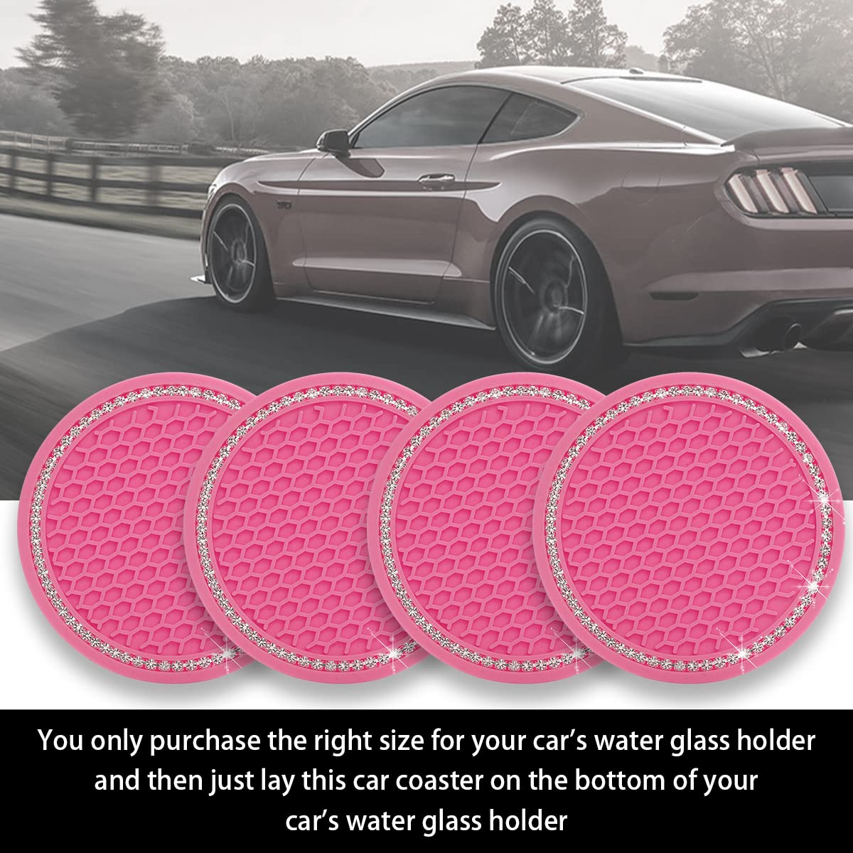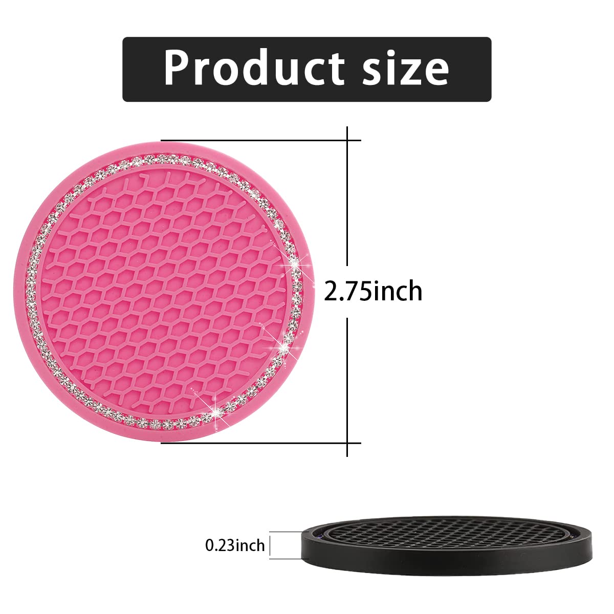 【Package Content】: There are 4 pieces of diamond encrusted car coasters. The round diameter is 2.75 inches and the thickness is 0.23 inches. The crystal clear crystal rhinestone match complement each other, will make your car interior look more luxurious and add personal charm.