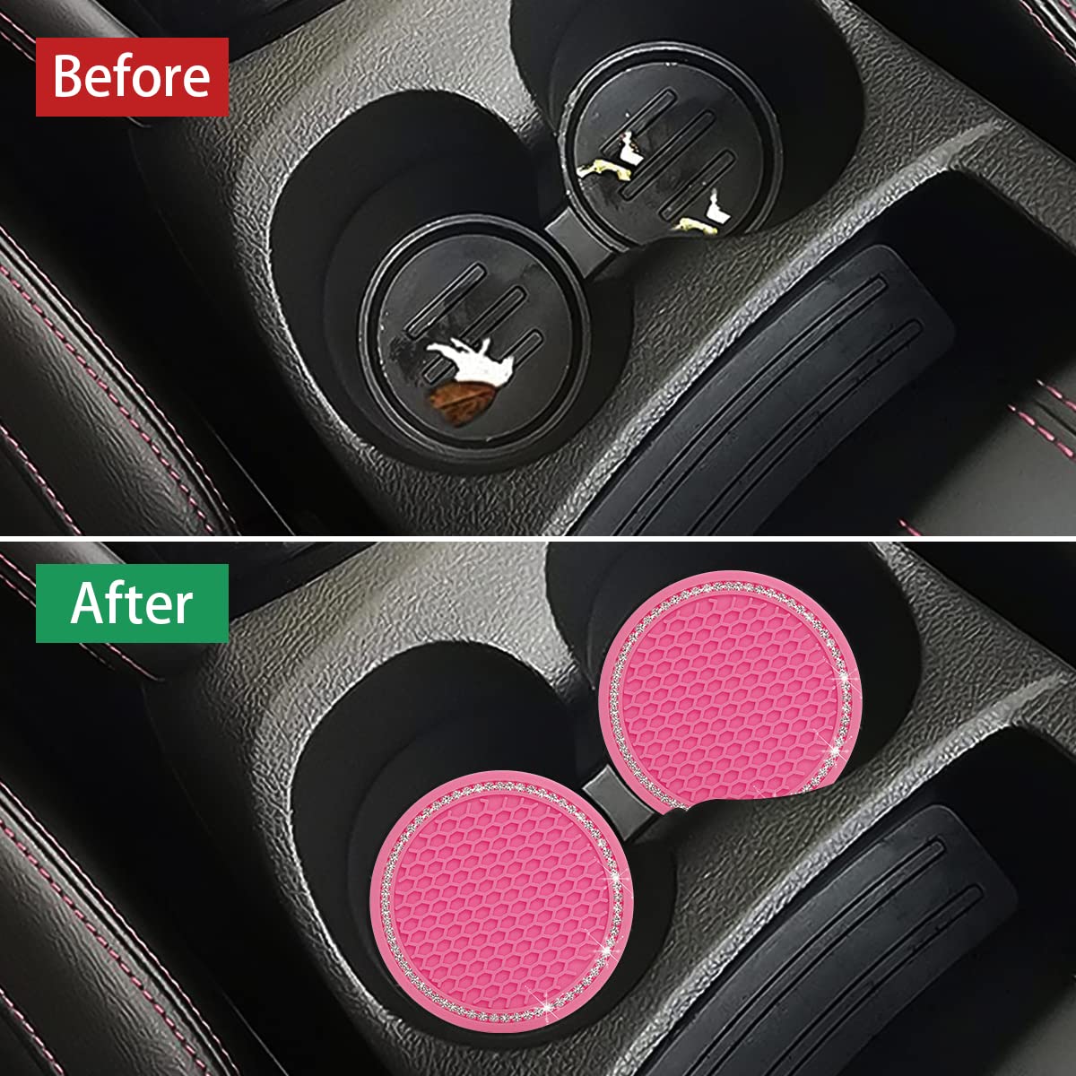 【Excellent Material】: The bling car coaster is made of high quality silicone material. It has good high temperature resistance, corrosion resistance, aging resistance, plasticity and adhesion. It can be used in high temperature environments for a long time without deformation, expansion or melting. It is resistant to corrosion by chemicals such as acids, alkalis, and salts, and can be used stably for a long time.