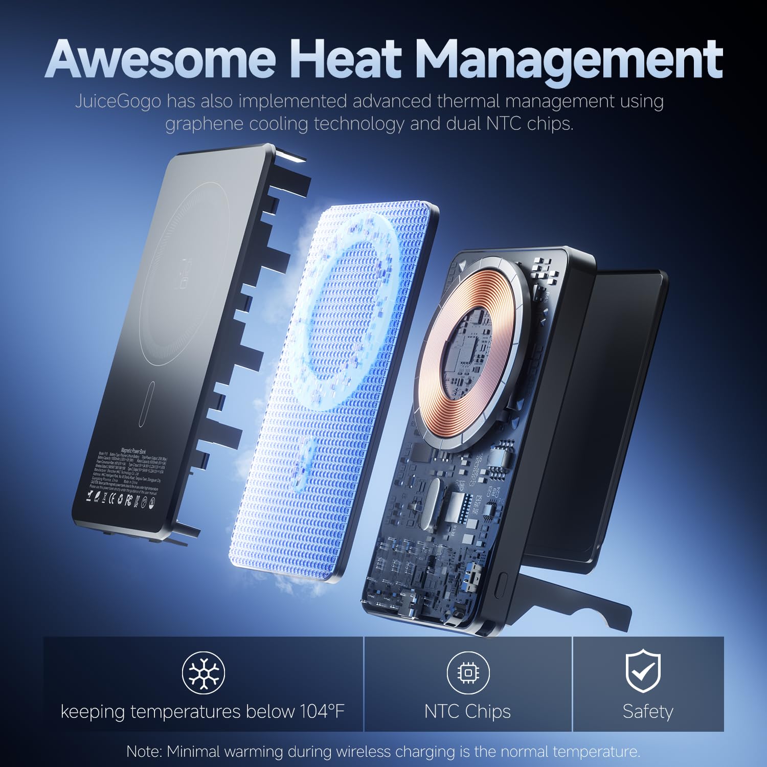 Superior Safety & 36-Month Friendly Service - Equipped with NTC intelligent temperature control, short-circuit, overvoltage, overcurrent & overcharge protection. Dual charging feature (charge power bank + phone simultaneously), 36-month worry-free service, Amazon's Choice for MagSafe portable charger