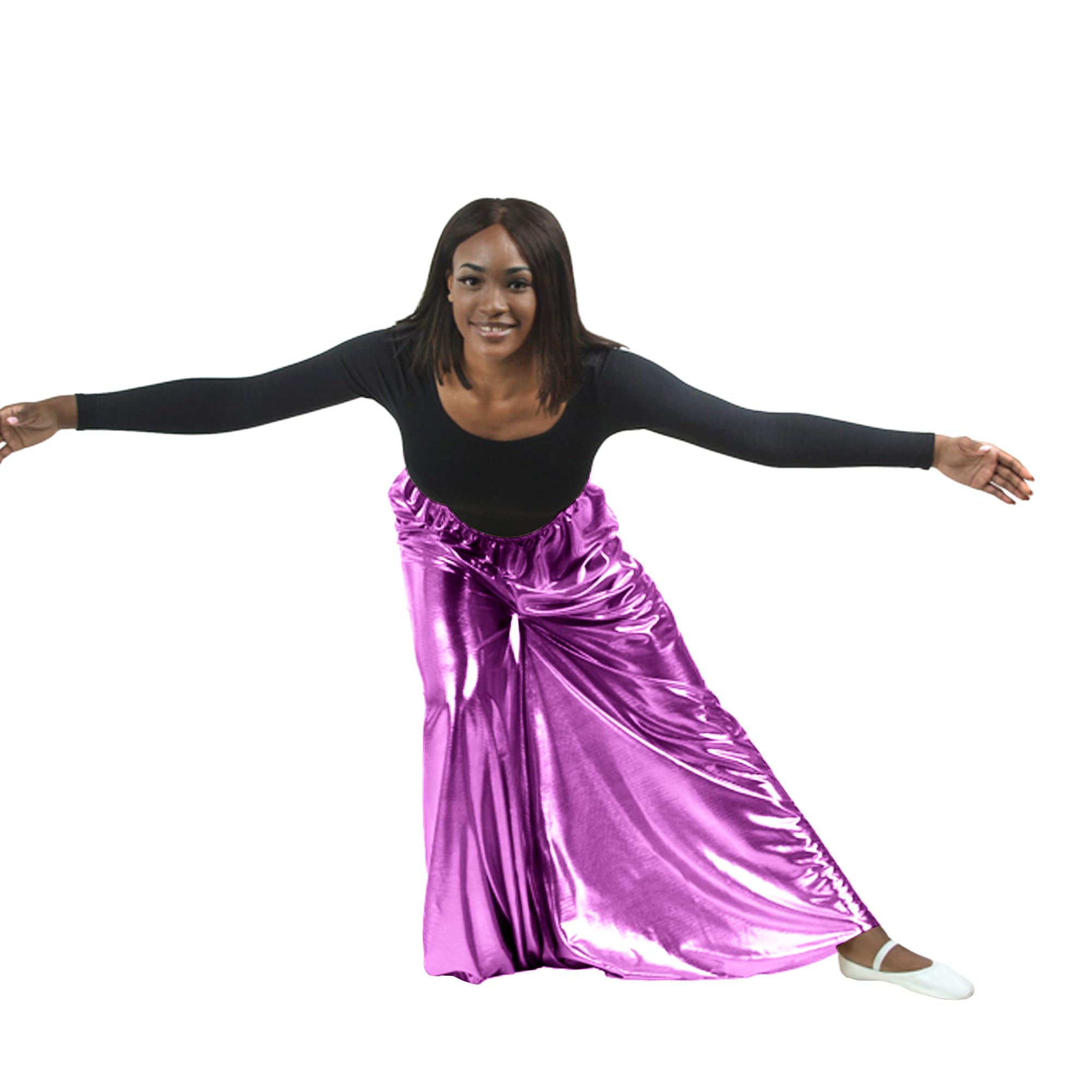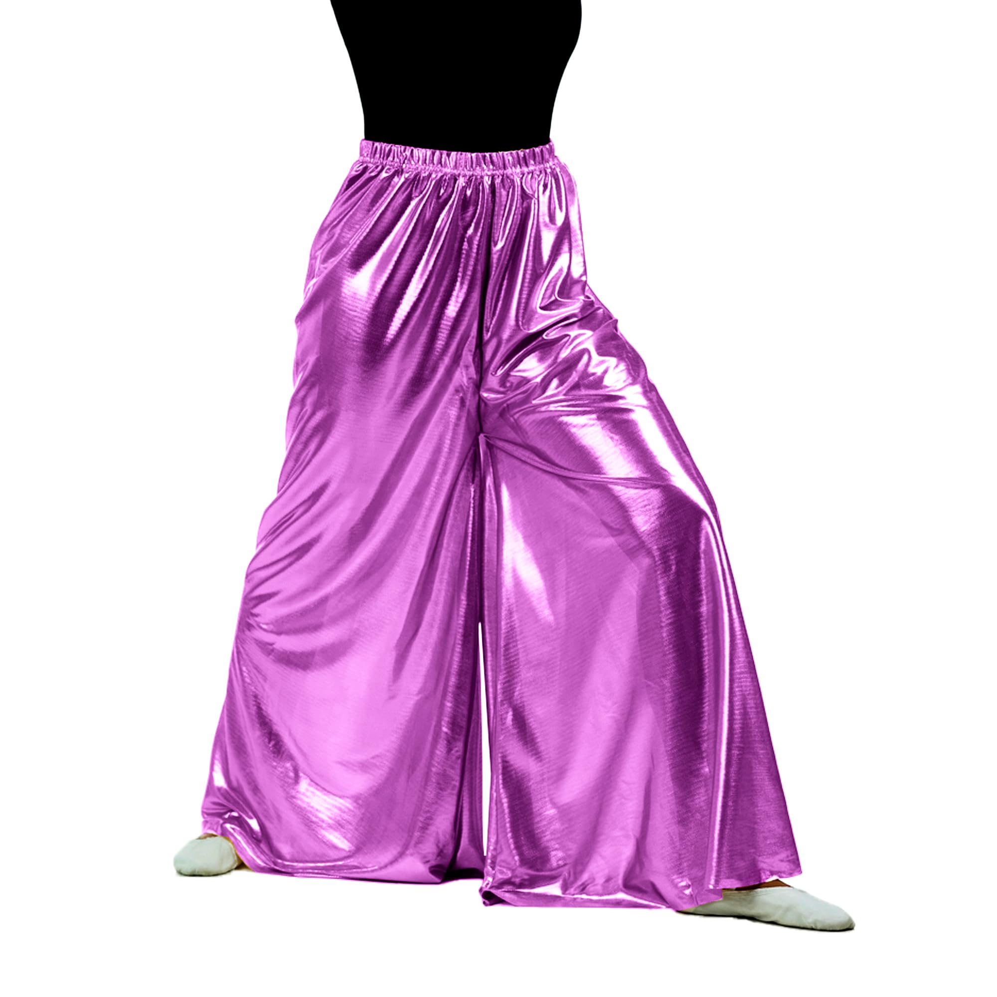 Description Palazzo pant is designed for dancers that perform spiritual or liturgical dancing. This pant features a loose and extra wide leg fit. The polyester/spandex fabric is smooth, soft, and moves easily when dancing. The elastic waistband design provides a comfortable fit and easy changing for performances. The palazzo pants are made in full length in order to fit the majority. But no need to worry about them being too long. You can easily cut to your size in length without a need for a hem as the material does not unravel or fray.