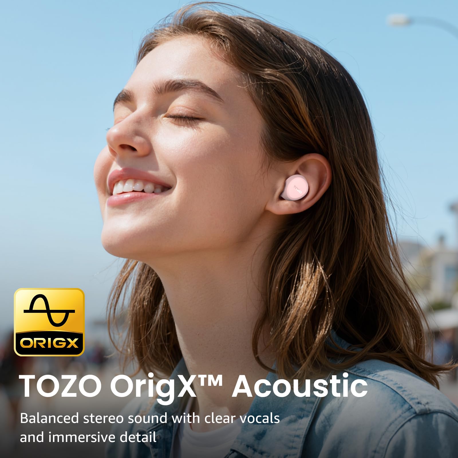 [Immersive Stereo Sound with TOZO OrigX Technology] TOZO OrigX tuning delivers clear vocals, balanced mids, and natural stereo sound for music, podcasts, and videos.