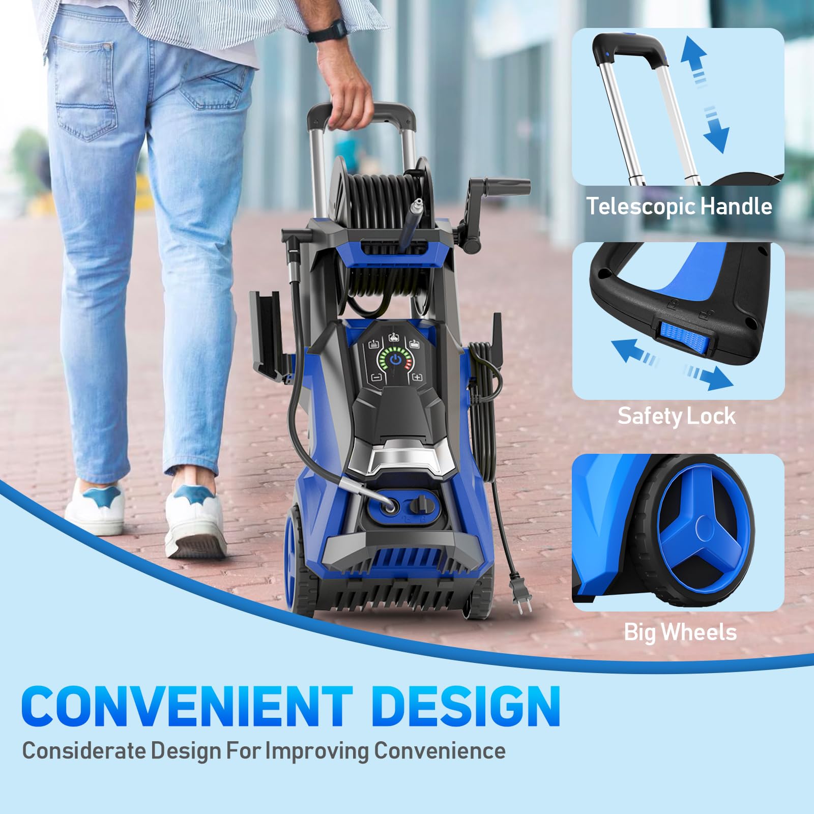 Softy Touch Screen: Our pressure washer provides three modes(Soft, Medium and Strong). Simply tap your finger to easily adjust the pressure you need, make cleaning a breeze