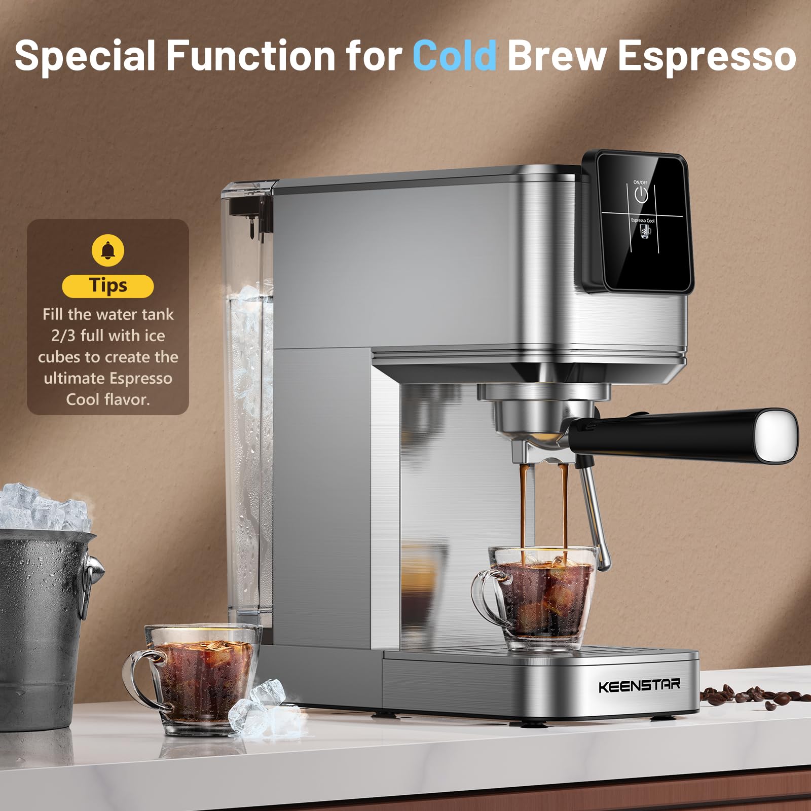【Convenient Touch Screen】The touch screen design allows you to brew espresso, Americano or cold brew coffee with just one touch. Very easy to operate. The advanced fast heating system ensures that your espresso is ready in no time, making it easy to enjoy your coffee whenever you want.