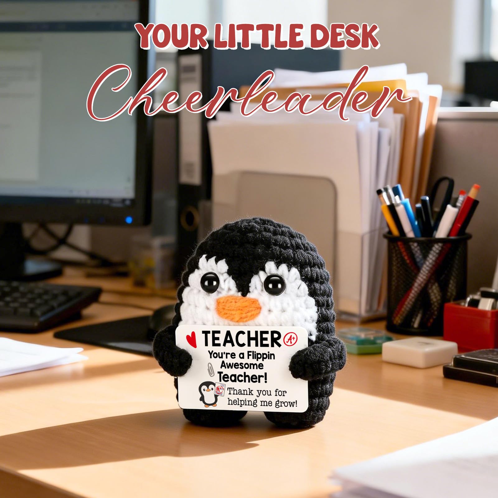 Stress-Relieving Penguin Pal: Made of premium soft yarn and cotton filling, this tiny crochet penguin is squeezable, durable, and comforting to touch. After a busy school day, this emotional penguin pal helps teachers relax, recharge, and feel appreciated